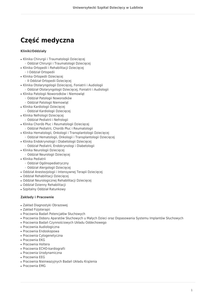 Część medyczna - Uniwersytecki Szpital Dziecięcy w Lublinie