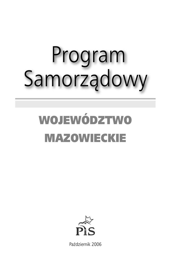 Program Samorządowy WOJEWÓDZTWO MAZOWIECKIE Październik 2006 Szanowni Państwo, rok temu, dzięki głosom Wyborców, wzięliśmy na siebie odpowiedzialność za kraj i za Polaków. Podjęliśmy się trudnego zadania naprawy państwa i stworzenia IV Rzeczypospolitej na fundamentach prawa i sprawiedliwości. Mieliśmy pomysł na nową Polskę i stworzyliśmy Program Polski Solidarnej. Dziś, przed wyborami samorządowymi, mamy konkretne propozycje i rozwiązania. Chcemy być bliżej ludzi. Chcemy nadal brać odpowiedzialność za całą Polskę, każde województwo, każdy powiat, każdą gminę. Jesteśmy dobrze przygotowani do tego zadania. Aby w pełni wykorzystać szanse rozwoju, jakich Polska do tej pory nie miała, przygotowaliśmy Samorządowe Programy Wojewódzkie, które zamierzamy zrealizować. Prezes partii Prawo i Sprawiedliwość Spis treści Przedmowa Autorów programu . . . . . . . . . . . . . . . . . . . . . . . . . . . . . . . . . 5 Ogólna charakterystyka województwa . . . . . . . . . . . . . . . . . . . . . . . . . . . 7 Diagnoza sytuacji społeczno-gospodarczej . . . . . . . . . . . . . . . . . . . . . . . . . . . . 7 Główne kierunki rozwoju województwa . . . . . . . . . . . . . . . . . . . . . . . . . . . . . 11 Odniesienie do dokumentów programowych województwa i Partii PiS . . . . . . . . . . . . . . . . . . . . . . . . . . . . . . . . . . . . . 11 Wizja rozwoju województwa mazowieckiego do 2015 roku . . . . . . . . . . . . . . . . . . . . . . . . . . . . . . . . . . . . . . . . . . . . . . . 17 Cel główny Samorządowego Programu PiS Rozwoju Województwa Mazowieckiego . . . . . . . . . . . . . . . . . . . . . . . . . . . . . . . 19 Obszary priorytetowe Samorządowego Programu PiS Rozwoju Województwa Mazowieckiego . . . . . . . . . . . . . . . . . . 23 Edukacja . . . . . . . . . . . . . . . . . . . . . . . . . . . . . . . . . . . . . . . . . . . . . . . . . . . . . . . 23 Ochrona zdrowia . . . . . . . . . . . . . . . . . . . . . . . . . . . . . . . . . . . . . . . . . . . . . . . 25 Polityka prorodzinna i pomoc społeczna . . . . . . . . . . . . . . . . . . . . . . . . . . . . . 25 Polityka prorodzinna . . . . . . . . . . . . . . . . . . . . . . . . . . . . . . . . . . . . . . . . . . . . . 26 Kultura i ochrona jej dóbr . . . . . . . . . . . . . . . . . . . . . . . . . . . . . . . . . . . . . . . . . 28 Rozwój obszarów wiejskich . . . . . . . . . . . . . . . . . . . . . . . . . . . . . . . . . . . . . . . 29 Ochrona środowiska, gospodarka wodna i ochrona przeciwpowodziowa . . . . . . . . . . . . . . . . . . . . . . . . . . . . . . . . . 35 Transport kolejowy . . . . . . . . . . . . . . . . . . . . . . . . . . . . . . . . . . . . . . . . . . . . . . 35 Drogi . . . . . . . . . . . . . . . . . . . . . . . . . . . . . . . . . . . . . . . . . . . . . . . . . . . . . . . . . 38 Turystyka . . . . . . . . . . . . . . . . . . . . . . . . . . . . . . . . . . . . . . . . . . . . . . . . . . . . . . 42 Obronność i bezpieczeństwo publiczne. . . . . . . . . . . . . . . . . . . . . . . . . . . . . . 44 Polityka regionalna i fundusze europejskie . . . . . . . . . . . . . . . . . . . . . . . . . . . 47 Innowacyjność . . . . . . . . . . . . . . . . . . . . . . . . . . . . . . . . . . . . . . . . . . . . . . . . . . 48 Promocja regionu . . . . . . . . . . . . . . . . . . . . . . . . . . . . . . . . . . . . . . . . . . . . . . . 49 Uwarunkowania realizacji celów Samorządowego Programu PiS Rozwoju Województwa Mazowieckiego . . . . . . . . 51 4 Szanowni Państwo! Solidna praca fizyczna, wysiłek intelektualny, zaangażowanie społeczno-polityczne nie mogą być jedynie zwykłym wypełnianiem obowiązków, zarabianiem na codzienne utrzymanie lub drogą do spełnienia osobistych ambicji i pragnień. Ludzki wysiłek (także ten związany z polityką „rozsądna troska o dobro wspólne”) musi być nakierowany na bycie dla innych, na wznoszenie się ponad własne tylko potrzeby, na prawdziwą służbę ludzkiej społeczności. Kandydaci partii Prawo i Sprawiedliwość, ubiegający się o zaszczytną funkcję radnego wojewódzkiego, pragną przez swoją osobistą uczciwość, zawodowe kompetencje i zaangażowanie w pracę społeczno-polityczną podjąć autentyczną służbę człowiekowi, być blisko ludzkich spraw, przyczynić się do budowania wspólnoty samorządowej całego Mazowsza oraz do odczuwalnego dla wszystkich rozwoju Polski. *** Poniżej przedstawiamy hasłowo główne kierunki działań, które powinny zostać podjęte, by wykorzystać wszystkie szanse dla wszechstronnego rozwoju Mazowsza. W Programie Rozwoju Województwa Mazowieckiego, który oddajemy do Państwa rąk, zawartych jest wiele konkretnych propozycji i rozwiązań. Niektóre są kontynuacją pomysłów, które na Mazowszu już zaczęto wprowadzać. Szanujemy je i przyznajemy się do nich, bo przecież w ostatnich latach wzięliśmy współodpowiedzialność za to, co się w naszym województwie działo (szczególnie w dziedzinie kultury i turystyki). Mamy też szereg nowych propozycji. Najbliższe lata będą – jak wierzymy – czasem wprowadzania ich w życie. Przy tej okazji zadać należy pytanie: skąd wziąć środki finansowe na realizację zadań, które są konieczne dla harmonijnego rozwoju naszego województwa? Odpowiadamy jasno: bardzo istotnym źródłem finansowania będą środki z Unii Europejskiej. To rząd Prawa i Sprawiedliwości zdecydował, że na Regionalny Program Operacyjny dla Województwa Mazowieckiego przeznaczono w najbliższych latach ok. 1 miliarda 800 milionów euro. To olbrzymia suma. Trzeba ją dobrze wykorzystać. Drugie źródło finansowania to budżet województwa. Ostatnie lata przynoszą bardzo istotny wzrost naszego budżetu. Przy starannym gospodarowaniu wystarczy funduszy na wiele przedsięwzięć. I jeszcze jedno pytanie, które zapewne padnie w trakcie kampanii wyborczej: dlaczego właśnie my, dlaczego kandydaci Prawa i Sprawiedliwości mają wz