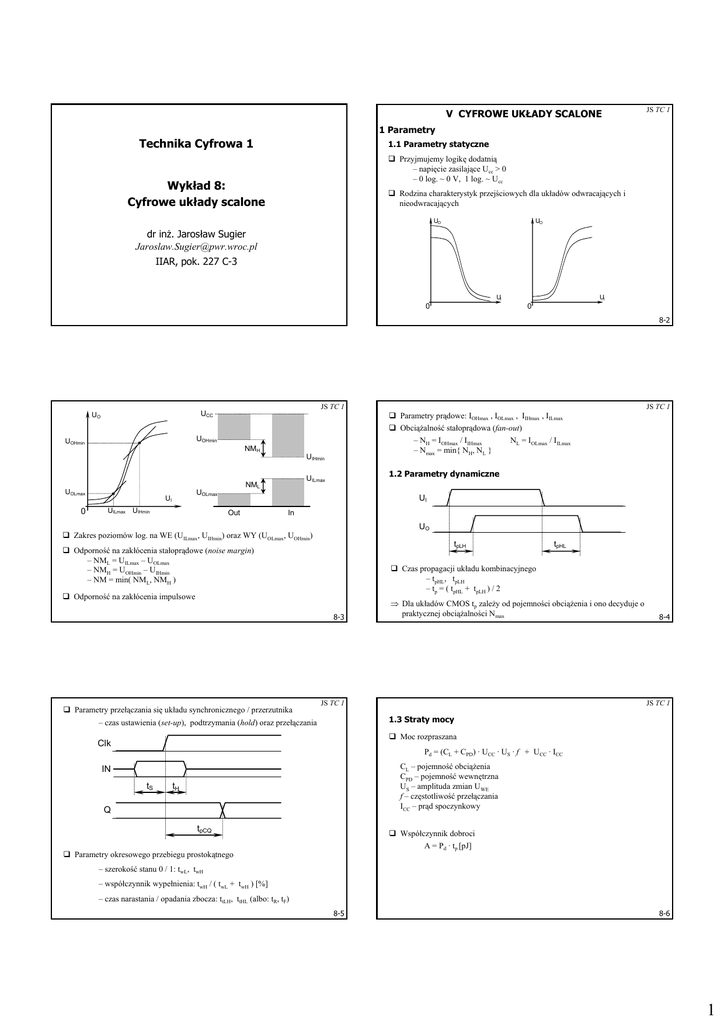 Technika Cyfrowa 1 Wykład 8: Cyfrowe układy scalone
