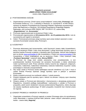 Regulamin promocji „ZMIEŃ OPONY PRZED KOLEJKAMI” (zwany
