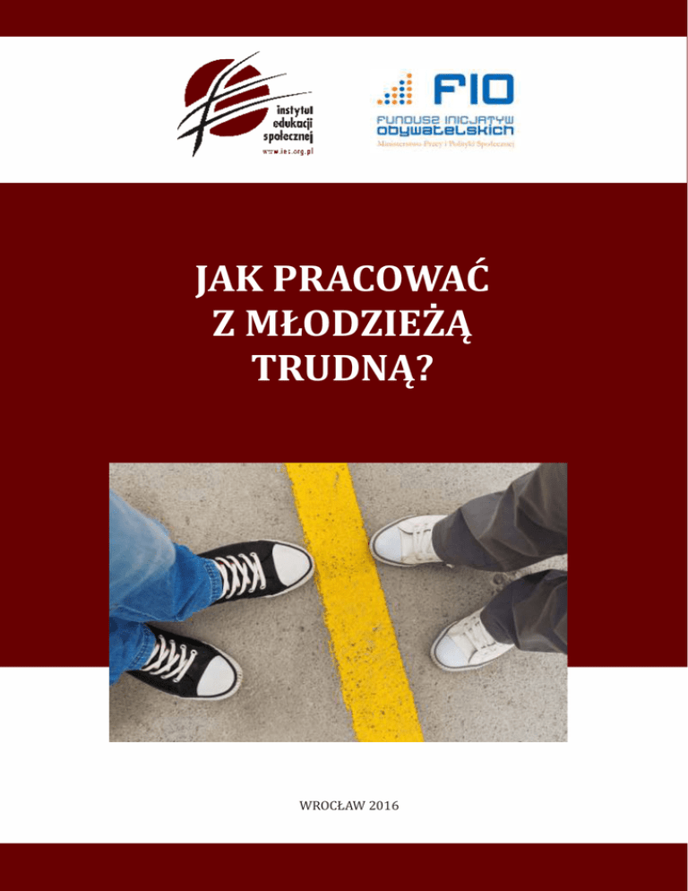 JAKPRACOWAĆ ZMŁODZIEŻĄ TRUDNĄ? WROCŁAW2016 Słowemwstępu... Tytuł niniejszej publikacji jest nieco przekorny gdyż już w pierwszym rozdziale postaramy się pokazać Pań stwu, ż e nie ma takiej kategoriijakmłodzież “trudna”. Przyjrzymy się natomiast temu dlaczego to nam dorosłym jest trudno z pewnymi zachowaniami młodych ludzi i spró bujemy odpowiedzieć sobienapytania:skądonesiębiorąicoznimirobić ? Postaramy się pokazać ró wnież , ż e pracując z młodzież ą powinniś my zacząć od zmierzenia się z samym sobą gdyż to my sami jesteś mynarzędziemwtejpracy. KingaEkert InstytutEdukacjiSpołecznej Jakpracować zmłodzież ątrudną? 2 Spistreści Rozdział1cotoznaczytrudnamłodzież -czylikomututajjesttrudno? 4 Rozdział2skądsiębiorątrudnezachowaniaicoznimizrobić ? 6 Rozdział 3 kto się nadaje do pracy z trudną młodzież ą - rzecz o 11 kompetencjachosobistych Rozdział4edukacjapozaformalnaatrudnezachowaniamłodzież y 14 Rozdział5paręsłó wopomocypsychologicznej 16 18 Oautorze 19 InstytutEdukacjiSpołecznej Jakpracować zmłodzież ątrudną? 3 Rozdział1cotoznaczytrudnamłodzież-czylikomututajjesttrudno? Jedna z teorii, któ rą najbardziej lubimy mó wi o tym, ż e nie ma czegoś takiegojak"trudnamłodzież ".Topoprostudoroś lisobieczasaminieradząz niektó rymizachowaniamimłodychludzi.Podstawowąwartoś ciątejteoriijest to,ż ekiedyzabieramysięzanaprawianiemłodzież y,tomusimyzabrać sięza naprawianie siebie - poprawienie swoich kompetencji, rozwinięcie swojej inteligencjiemocjonalnej,zdobyciedodatkowejwiedzy.Czylijeś lichceszzbawić ś wiat-zacznijodsiebie.Temuzałoż eniuhołdujemywtejpublikacji.Nieoznacza tojednak,ż epewnezachowaniamłodzież ysąnienormatywnieiobiektywnie trudne. Do tego kawałka odniesiemy się w następnym rozdziale, aby lepiej zrozumieć ,zczegotakiezachowaniawynikająicowzwiązkuztymmoż emy zrobić jakodoroś li. Wkontekś cietakzwanejtrudnejmłodzież ywartoszczegó lniezwró cić uwagęnamocjakąmatujęzykisposó bwjakizniegokorzystamy.Nazywanie pewnych rzeczy sprawia, ż e czasami takimi właś nie one się stają. W tym zakresie całe mnó stwo eksperymentó w z zakresu psychologii społecznej pokazało jak taka dynamika moż e działać , na czele z najsłynniejszym bodaj eksperymentem Philippa Zimbardo o więź niach i straż nikach, w któ rym przypisanilosowoludzie,błyskawicznieprzyjmowalizachowania,zgodneze swojąroląizniezwyklebrutalnymikonsekwencjami,któ rezmusiły inalniedo przedwczesnego przerwania doś wiadczenia. Szereg podobnych, opartych na tym mechanizmie eksperymentó w, pokazał, jak takie prawidła działają w edukacji,gdzieszczegó lnąmocmająmocetykietki,czyliskró toweokreś lenia ucznialubgrubyucznió w,zaktó rymiidziecaływachlarzokreś leń ,zachowań i przewidywanychreakcji.Takwłaś niebardzoczęstojestz"trudnąmłodzież ą". Jakpracować zmłodzież ątrudną? 4 Zaetykietowanie jakiejś grupy w taki właś nie sposó b wyzwala w nauczycielach/opiekunach/osobachpracującychzmłodzież ą-całyszereg skojarzeń awichnastępstwiezachowań ,jakiezwykliś myprzyjmować wobec "trudnejmłodzież y.Zró bcieteneksperymentsami-powiedzciegłoś nosłowa "trudna młodzież " i zapiszcie, jakie skojarzenia przychodzą Wam do głowy. Wobecokreś lonychskojarzeń iprzekonań zaczynamysięwokreś lonysposó b czuć -naprzykład:jeś lipomyś lę,ż eONIsąniebezpieczni,zacznęsiębać .Aw następstwienaszezachowaniadopasowujemytotego,czegooczekujemy-na przykład wchodząc z napięciem i nastawieniem obronnym do sali pełnej "trudnej młodzież y". Napięcie, lęk, oczekiwanie na atak często powodują podobnezachowaniaudrugiejstrony.Zamiastzbliż eniaikontaktupojawiasię więc dystans, niezrozumienie. Uruchamia się spirala napięcia, eskalacja obronnych zachowań i… już jesteś my w domu, z pełnym przekonaniem stwierdzając,ż erzeczywiś ciesiedziprzednamiTRUDNAMŁODZIEZ!Wpracyz grupami panuje prosta zasad: odbierzesz to, co wnosisz. Jeś li wnosisz lęk, nieufnoś ć,chęć konfrontacji-towłaś nieztymsięspotkasz. Zacznijmy więc naszą rozmowę o pracy z trudną z młodzież ą od… zrezygnowaniaznazywaniamłodzież ytrudnej.Parafrazując:porzuć etykietki, ty,któ rybierzeszsięzapracęzmłodzież ą! Jakpracować zmłodzież ątrudną? 5 Rozdział2skądsiębiorątrudnezachowaniaicoznimizrobić? Ok, ale w co w zamian? Przecież wobec wyzywania, przemocy, agresji, zakłó caniaprowadzeniazajęć ,permanentnejdekoncentracji,izolacji,odmowy wspó łpracy, wycofania z kontaktu, itd, itd - wobec tych ró ż nych mało kooperacyjnychzachowań trudnoprzejś ćobojętnie.Isłusznie.Aletowłaś niesą zachowania-nieprzyjemne,niestandardowe,nienormatywne.Pracaztrudną młodzież ą oznacza pracę w warunkach trudnych zachowań młodych ludzi. Wręczmoż nabypowiedzieć ,ż etopracaztymitrudnymizachowaniami. Co to są trudne zachowania? To te wszystkie zachowania, któ re przeważ nie wykraczają poza normy społeczne, są nieadekwatne do wieku i sytuacji uczestnikó w, nieodpowiadają na oczekiwania dorosłych lub innych ró wieś nikó w. Przeważ nie są związane z nadmierną aktywnoś cią, ukierunkowaną niezgodnie z aktualnie wyznaczonym celem lub wręcz przeciwnie-zwycofaniem,brakiemaktywnoś ci.Częstozwiązanesąagresjąi przemocą jako sposobami osiągania indywidualnego celu. Moż emy je zaobserwować w sytuacjach niebrania odpowiedzialnoś ci za własne postępowanie,unikaniaobowiązkó w,nieprzyjmowaniakonsekwencji.Często towarzyszą im emocje o sile, natęż eniu i ekspresji nieadekwatnej z punktu widzenianormspołecznych.Dlaczegonazywamyjetrudnymizachowaniami? Bowzwiązkuznimipojawiająsiętrudneemocjeudorosłych,któ rzyoczekują zupełnieinnychreakcji,bodozupełnieinnychreakcjisąprzyzwyczajeni.Kiedy stoimyprzedgrupązzamiaremprzeprowadzeniaciekawychzajęć ,oczekujemy koncentracji,wysłuchaniaizastosowaniasiędonaszychinstrukcji.Gdyzamiast tego jest krzyk, rozgard