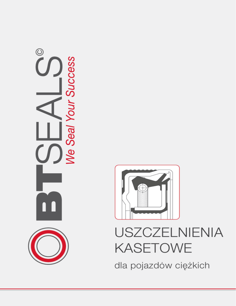 USZCZELNIENIA KASETOWE dla pojazdow ciężkich Uszczelnienia kasetowe 2 3 4 ØDH8 3,2 7 5 Ødh8 5,0 2,5 6 1 Rys.1: uszczelnienie piasty koła CWH (NBR, FKM,HNBR) 4 9 ØDH8 5,0 2,5 8 3,2 7 Ødh8 5 2 Rys.2: uszczelnienie dyferencjalu CWP (FKM) 3 Uszczelnienia kasetowe Ogolnie Uszczelnienie kasetowe jest całkowicie zamkniętym pierścieniem uszczelniającym walki obrotowe z zastosowaniem w ciężkim przemyśle samochodowym. Głowne zastosowanie znajduje w piastach i osiach (jako uszczelnienie dyferencjału). Elastomerowy korpus uszczelniający z silnymi wargami uszczelniającym jest trwale osadzony na wałku, przy czym zewnętrzna część kasety obraca się wraz z piastą. Dzięki temu powstaje stała siła nacisku wargi uszczelniającej, niezależnie od prędkości obrotowej piasty. Dwie elastyczne niezależne od siebie wargi uszczelniające chronią przed zanieczyszczeniem i wodą. Metalowa obudowa wykonana z jednego elementu zapobiega przeciekom oleju (co może wystąpić przy obudowach łączonych). Zalety (patrz rys.1 i 2) 1 Uszczelnianie- elastomer; /nie są potrzebne powierzchnie utwardzone/szlifowane 2 Kombinowany, rowkowy elastomer, metalowe gniazdo zapewnia bezprzeciekowe uszczelnienie i optymal ne odprowadzenie ciepła 4 Zmienne odrzutniki oleju wspomagają smarowanie krawędzi uszczelniającej dla obu kierunkow obrotow Podwojne wargi uszczelniające chronią przed wodą i kurzem 5 Metalowy olejowy deflektor stanowi ochronę przed bezpośrednim strumieniem oleju z lożyska 6 Dystansowe występy do prawidłowego ustawienia elementu uszczelniającego podczas montażu z 3 przestrzeniami dla cyrkulacji oleju 7 Wstępne smarowanie powierzchni wspolpracujących zapobiega pracy na sucho 8 Zawulkanizowany elastomerowy występ dla prawidłowego pozycjonowania podczas montażu 9 Elastomerowe szczelne osadzenie Wskazowki zabudowy i obsługi Podczas rozruchu występy dystanowe ścierają się, przez co może pojawić się dym. Do montażu zaleca się stosować odpowiednie narzędzia montażowe, ażeby NIE ZDEFORMOWAĆ pojedynczych elementow uszczelnienia. Na życzenie zostaną udostępnione odpowiednie rysunki. Podczas montażu nie należy stosować żadnych dodatkowych środkow uszczelniających oraz klejow montażowych! Uszczelnienia kasetowe są przewidziane dla przesmarowanych olejem osi. Wystarczająco należy nasmarować powierzchnie wspołpracujące. Jeżeli stosuje się smarowane osie, należy to ująć w zamowieniu, celem umiejscowienia większej ilości smaru w kasecie . Referencje Sprzedaz BT Seals Austria Inkustrasse 1-7/8 A-3400 Klosterneuburg Tel +43 2243 24332 Fax +43 2243 25741 [email protected] [email protected] BT Seals Hungária Csokonai utca 18 H-8252 Balatonszepezd Tel +36 87 568048 [email protected] [email protected] BT Seals Czech Republic Modrínova 351 CZ-37361 Hrdejovice Tel +420 387 221335 [email protected] Produkcja BT Seals Hungária Somfalvi út 21 H-9400 Sopron Tel +36 99 523840 [email protected] Produkty BT Seals w uzyciu na całym swiecie www.btseals.com