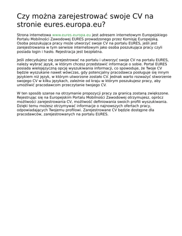 Czy można zarejestrować swoje CV na stronie eures.europa
