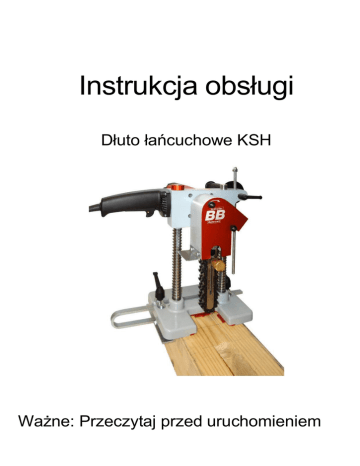 Instrukcja obsługi Dłuto łańcuchowe KSH Ważne: Przeczytaj przed uruchomieniem Szanowny kliencie, Gratulujemy zakupu najwyższej jakości maszyny, która będzie Ci wiernie służyć podczas wykonywania Twojej pracy. Jest to szwajcarski wyrób, który został wykonany z najwyższą precyzją i starannością. Aby maszyny nie uszkodziła nieprawidłowa obsługa ani nie spowodowała ona zranień użytkownika istotne jest to, aby dokładnie zapoznać się z instrukcją obsługi. Użytkownik musi mieć ukończony przewidziany prawem minimalny wiek i posiadać wystarczającą wiedzę fachową. W razie jakichkolwiek pytań dotyczących obsługi i eksploatacji maszyny skontaktuj się z nami lub sprzedawcą. Producent: Twój dealer: Brühwiler Maschinen AG Hauptstrasse 1 CH-8362 Balterswil Tel. 0041 71 973 80 40 Fax 0041 71 973 80 49 [email protected] www.bb-maschinen.ch Spis treści 1. Dane techniczne 2. Zakres dostawy 3. Demontaż zestawu łańcucha 4. Montaż zestawu łańcucha 5. Naciąganie łańcucha 6. Smarowanie łańcucha 7. Smarowanie prowadnicy 8. Praca z szablonem 9. Praca z ogranicznikiem głębokości 10. Deklaracja zgodności CE 1. Dane techniczne Nazwa maszyny: Model: Napięcie znamionowe: Moc pobierana: Częstotliwość: Prędkość obrotowa bez obciążenia Waga netto bez zestawu 2. Zakres dostawy - Ogranicznik boczny - Zestaw łańcuchowy według wyboru - Różne narzędzia - Instrukcja obsługi - Ogólne zasady bezpieczeństwa Dłuto łańcuchowe KSH 230 V 1400 Wat S6-40% 50-60 Hz 4100 1 / min 7,6 kg Uwaga! W przypadku wszelkich prac nad frezującym należy wyłączyć wtyczkę z gniazdka. 3. Demontaż zestawu łańcucha 1. Zdejmij pokrywę ochronną lekko odkręcając dwie śruby. 2. Za pomocą klucza płaskiego 10 mm poluzuj nakrętkę kontrującą w tylnej części szyny. 3. Następnie poluzuj śrubę napinającą. zestawem 4. Za pomocą klucza płaskiego 15 mm poluzuj i zdejmij nakrętkę na prowadnicy . 5. Przesuń prowadnicę do góry i ją wyjmij. 6. Zdejmij łańcuch tnący (Uwaga ryzyko skaleczenia). 4. Montaż zestawu łańcucha 1. Zawieś łańcuch tnący na kole zębatym napędu. Zwrócić uwagę na kierunek frezowania. (Uwaga ryzyko skaleczenia) 2. Zdejmij nakrętkę przy śrubie mocującej miecz. Najpierw wstaw szynę prowadzącą w dole łańcucha a następnie u góry w rowek prowadzący. Następnie zamocuj nakrętkę za pomocą klucza płaskiego 15mm. (Nie należy mocno dokręcać) 3. Za pomocą klucza płaskiego 10 mm naciągnij śrubę naprężającą umieszczoną z tyłu szyny prowadzącej. 4. Łańcuch przy pociągnięciu w bok powinien mieć 3-4mm luzu. 5. Za pomocą klucza płaskiego 15 mm dokręć nakrętkę na mocowaniu miecza. 6. Ponownie sprawdź naciąg łańcucha. Jeśli jest to konieczne ponownie poluzuj nakrętkę i ją ponownie wyreguluj. 7. Następnie dokręć nakrętkę kontrująca za pomocą klucza płaskiego 10mm tak, aby śruba napinająca łańcucha nie mogła się poluzować. 10. Zamontuj osłonę przed wiórami. 5. Naciąganie łańcucha 1. Za pomocą klucza płaskiego 15mm poluzuj nakrętkę mocująca na szynie prowadzącej. 2. Poluzuj nakrętkę kontrującą z tyłu szyny prowadzącej za pomocą klucza płaskiego 10mm. 3. Za pomocą klucza płaskiego 10 mm napręż śrubę naciągającą łańcuch. 4. Łańcuch przy pociągnięciu w bok powinien mieć 3-4mm luzu. 5. Za pomocą płaskiego klucza 15mm dokręć nakrętka przy szynie prowadzącej. 6. Dokręć nakrętkę kontrującą przy śrubie napinającej łańcuch. 6. Smarowanie łańcucha Łańcuch może być smarowany za pomocą spreju zarówno wtedy, gdy jest zamontowany jak i wtedy, gdy jest zdjęty. 7. Smarowanie prowadnicy 1. Zdemontuj tuleję mosiężną przy szynie prowadzącej. 2. Wypełnij ją wysokiej jakości smarem. 3. Przykręć tuleję mosiężną na jej śrubie smarującej. 4. Przekręcaj tuleję aż do momentu, gdy smar wyciskany będzie z łożyska szyny prowadzącej. 8. Praca z szablonem Szablon jest pomocą przy wyregulowaniu maszyny do otworu na czop, który ma być wydłutowany. 1. Przesuń maszynę w bok, aż szablon spotka się z zarysem otworu czopu. (Patrz strzałka) 2. Przesuń ogranicznik boczny aż do belki i dokręć za pomocą dźwigni ręcznej. 3. Przesuń maszynę w wzdłuż, aż szablon spotka się z początkiem zarysu otworu czopu. (Patrz strzałka) 4. Teraz maszyna jest wyregulowana na otwór. Jeśli głębokość dłutowania została już ustawiona można rozpocząć pierwsze dłutowanie. 5. Proces dłutowania należy kontynuować, aż tylna część szablonu spotka się z końcowym zarysem otworu na czop. (Patrz strzałka) 9. Praca z ogranicznikiem głębokości 1. Wyłączoną maszynę należy ustawić do dołu, aż zestaw łańcucha oprze się na drewnie. 2. Poluzować śrubę dźwigni ręcznej przy ograniczniku głębokości i ustawić głębokość dłutowania za pomocą metra. 3. Jeśli maszyna jest już ustawiona na bokach i wzdłuż można rozpocząć proces dłutowania. 10. Deklaracja zgodności CE Model KSH 100 /150 Niniejszym deklarujemy z pełną odpowiedzialnością, że niniejszy produkt jest zgodny z następującymi normami lub innymi dokumentami normatywnymi. EN61029, EN55014, EN61000 Zgodnie z przepisami dyrektyw 98/37/WE i 89/336/EWG Poziom ciśnienia akustycznego:92 dB (A) Poziom mocy akustycznej: 103 dB (A) Odchylenie wynosi: 3 dB (A) - Należy nosić ochraniacze na uszy - Heinz Brühwiler Osoba odpowiedzialna: Brühwiler Maschinen AG Hauptstrasse 1 CH-8362 Balterswil Switzerland BB 1.2011