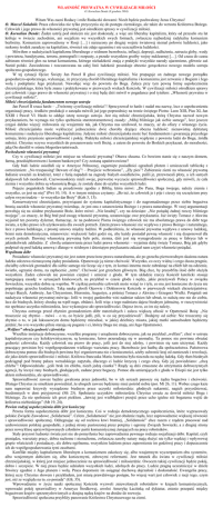 WŁASNOŚĆ PRYWATNA W CYWILIZACJI MIŁOŚCI O. Kornelian Dende (9 grudnia 1984) Witam Was zacni Rodacy i miłe Rodaczki słowami: Niech będzie pochwalony Jezus Chrystus! O. Marcel Sokalski: Praca człowieka nie tylko przyczynia się do postępu ziemskiego, ale także do wzrostu Królestwa Bożego. Człowiek i jego prawo do własności prywatnej jest ośrodkiem sprawy w cywilizacji miłości. O. Kornelian Dende: Żaden ustrój pod słońcem nie jest doskonały, a więc ani liberalny kapitalizm, który od przeszło stu lat króluje w świecie zachodnim, ani socjalizm we wszystkich swych formach, zwłaszcza najbardziej radykalny komunizm bezbożny. Komunizm zaprowadzony w Rosji […] i narzucony po drugiej wojnie światowej niemal połowie ludzkości, jako rzekomy środek zaradczy na kapitalizm, również nie zdaje egzaminu i nie uszczęśliwia ludzkości. Mówiłem o nadużyciach kapitalizmu liberalnego z widmem bezrobocia, inflacji, depresji, zadłużenia, zatrucia gleby, wody i powietrza, bandytyzmu, terroru, pornografii i rozpusty, a przede wszystkim groźby wojny nuklearnej […]. Od czasu do czasu zabieram również głos na temat komunizmu, którego nieludzkość znają z praktyki wszystkie narody ujarzmione, głównie zaś Naród polski. Zawiedziona i rozczarowana na całej linii ludzkość poszukuje obecnie gorączkowo nowego modelu ustroju społeczno-gospodarczego. W tej sytuacji Ojciec Święty Jan Paweł II głosi cywilizację miłości. Nie propaguje on żadnego nowego porządku gospodarczo-społecznego, wykazując, że przyczyną chorób liberalnego kapitalizmu i komunizmu jest zerwanie z Bogiem i Jego wolą i podeptanie Jego przykazań. Nawołuje więc do powrotu do Boga. Zaleca przy tym pewną formę uspołecznienia chrześcijańskiego, która była znana i praktykowana w pierwszych wiekach Kościoła. W cywilizacji miłości ośrodkiem sprawy jest człowiek i jego prawo do własności prywatnej i o niej będę dziś mówił w pogadance pod tytułem: „Własność prywatna w cywilizacji miłości”. Miłość chrześcijańska fundamentem nowego ustroju Jan Paweł II rzuca hasło – „Twórzmy cywilizację miłości’! Sprecyzował to hasło i nadał mu nazwę, lecz o uspołecznieniu organizacji pracy, środków produkcji o zarządu mówili już jego poprzednicy na tronie świętego Piotra: Leon XIII, Pius XI, Jan XXIII i Paweł VI. Hasło to oddaje istotę nowego ustroju. Jest nią miłość chrześcijańska, którą Chrystus nazwał nowym przykazaniem, bo wymaga nie tylko spełnienia starotestamentowej zasady: „Miłuj bliźniego jak siebie samego”, lecz jeszcze czegoś daleko więcej: miłowania się wzajemnie tak, jak Chrystus nas umiłował, to znaczy, aż do ofiary z własnego życia. Miłość chrześcijańska może wykluczyć jednocześnie dwie choroby drążące obecna ludzkość: nienawistną dyktaturę komunizmu i nadużycia liberalnego kapitalizmu. Jedynie miłość chrześcijańska może być fundamentem i gwarancją przyszłego ustroju, który przyniesie sprawiedliwość i pokój. Praktyka miłości chrześcijańskiej wypłynie z powrotu ludzi do Boga, źródła miłości. Chrystus wzywa wszystkich do poszanowania woli Bożej, a zatem do powrotu do Boskich przykazań, do moralności, jaką On określił w ośmiu błogosławieństwach. Pochodzenie własności prywatnej Czy w cywilizacji miłości jest miejsce na własność prywatną? Obawa słuszna. Co bowiem stanie się z naszym domem, farmą, przedsiębiorstwem i kontem bankowym? Czy zostaną upaństwowione? Gdy biali ludzie osiedlali się w Ameryce Północnej, zagarnięte posiadłości ogradzali płotem i umieszczali tabliczkę z ostrzeżeniem: „No trespassing! Beware of dog”! – Przejście wzbronione”, „Zły pies”! Zabieranie ziemi na własność prywatną Indianie uważali za kradzież, toteż z furią napadali na zagrody białych osiedleńców, palili je, przewracali płoty, a ich samych skalpowali lub mordowali. Czerwonoskórzy mieli swoje, pierwotne wyczucie sprawiedliwości społecznej, gdy mówili, że cała ziemia i wszystkie dobra są własnością Boga; że zostały dane do użytku wszystkich ludzi. Pojęcie pogańskich Indian są przedziwnie zgodne z Biblią, która mówi: „Do Pana, Boga twojego, należy ziemia i wszystko, co jest na niej” (Pwt 10, 14). A w innym miejscu czytamy: „Bo też, że człowiek je i pije i cieszy się szczęściem przy całym swym trudzie – to wszystko dar Boży” (Koh 3, 13). Konserwatywni chrześcijanie, przywiązani do systemu kapitalistycznego i do nagromadzonego przez siebie bogactwa bronią zaciekle własności prywatnej twierdząc, że jest ona z ustanowienia Bożego i z prawa naturalnego. W swej argumentacji powołują się na siódme przykazanie Boże, które mówi: „Nie kradnij”, czy na dziesiąte: „Nie pożądaj żadnej rzeczy bliźniego twojego”, co znaczy, że Bóg brał pod uwagę własność prywatną, ustanawiając owe przykazania. Już święty Tomasz z Akwinu wyjaśnił ten pozorny dylemat, tłumacząc, że na podstawie Pisma świętego człowiek nie ma absolutnego prawa do dóbr tego świata, a tylko prawo ich użytkowania dla swoich potrzeb. Zatem prawo własności nie wypływa z prawa Bożego i naturalnego, lecz z prawa ludzkiego, z prostej umowy między ludźmi. W podkreśleniu, że własność prywatna wypływa z umowy ludzkiej, brzmi nuta demokratyczna, mianowicie: większość ludzi godzi się, aby każdy posiadał pewną własność i nią dysponował dla swych potrzeb. Dawniej własnością prywatną było pole, ziemia, dziś jest nią wynagrodzenie za pracę w fabryce lub w jakimkolwiek zakładzie. Z chwilą ustanowienia przez ludzi prawa własności – wyjaśnia dalej święty Tomasz, Bóg jak gdyby podpisał się pod ludzką umową i dlatego w siódmym i dziesiątym przykazaniu zakazał nam czyjeś własności pożądać. Wspólnota dóbr Posiadanie własności prywatnej nie jest zatem przeciwne prawu na