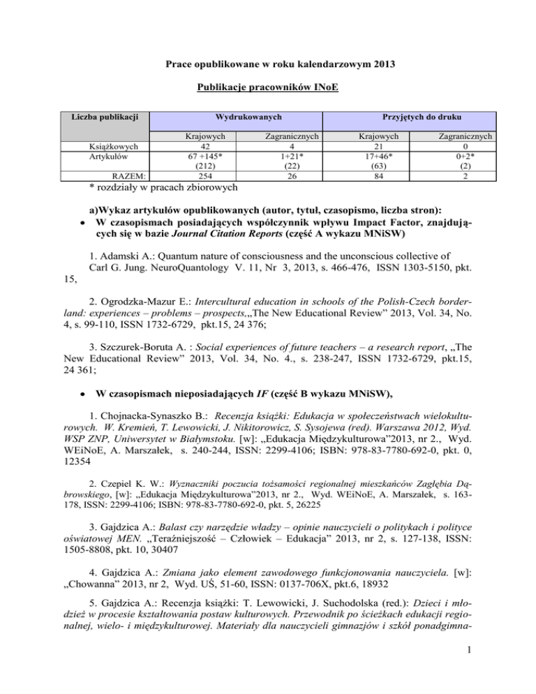 1 Prace opublikowane w roku kalendarzowym 2013 Publikacje