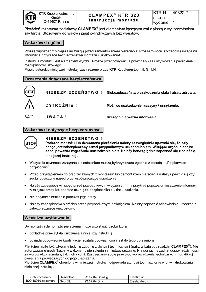 CLAMPEX® KTR 620 Instrukcja montażu KTR