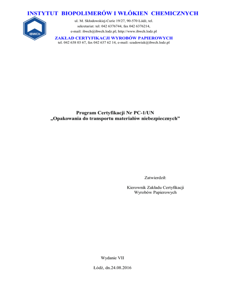 Program certyfikacji PC-1-UN - Instytut Biopolimerów i Włókien