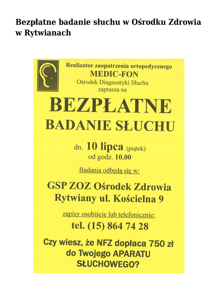 Bezpłatne badanie słuchu w Ośrodku Zdrowia w Rytwianach Gmina Rytwiany - www.rytwiany.com.pl
