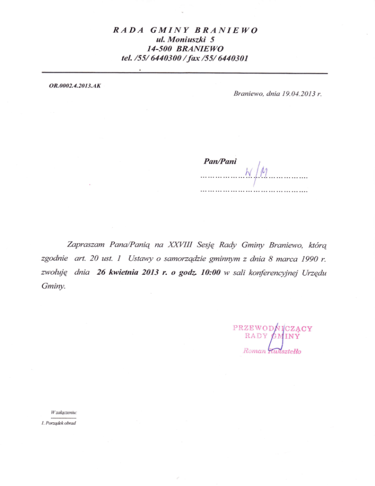 )AVNI,SES]I RADY GMINY BRANIEWO