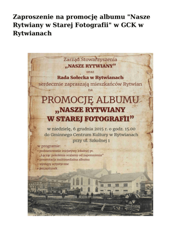 Zaproszenie na promocję albumu "Nasze Rytwiany w Starej Fotografii" w GCK w Rytwianach Gmina Rytwiany - www.rytwiany.com.pl