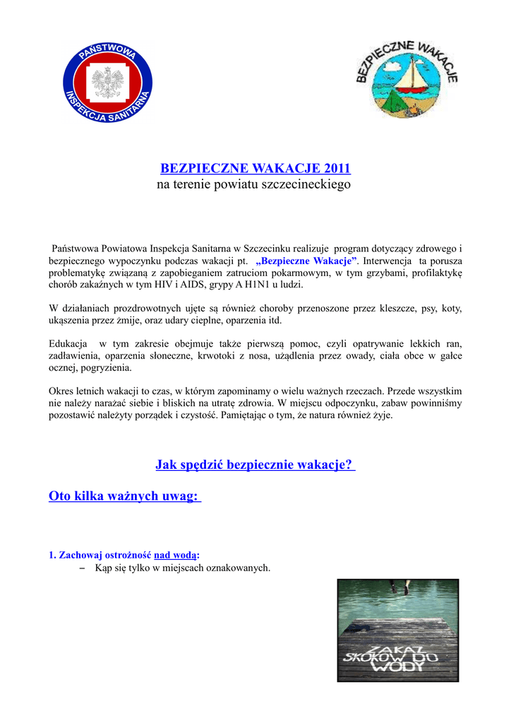 BEZPIECZNE WAKACJE 2011 na terenie powiatu szczecineckiego