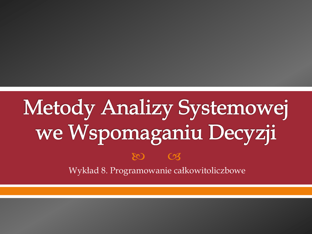 Wykład 8. Programowanie całkowitoliczbowe