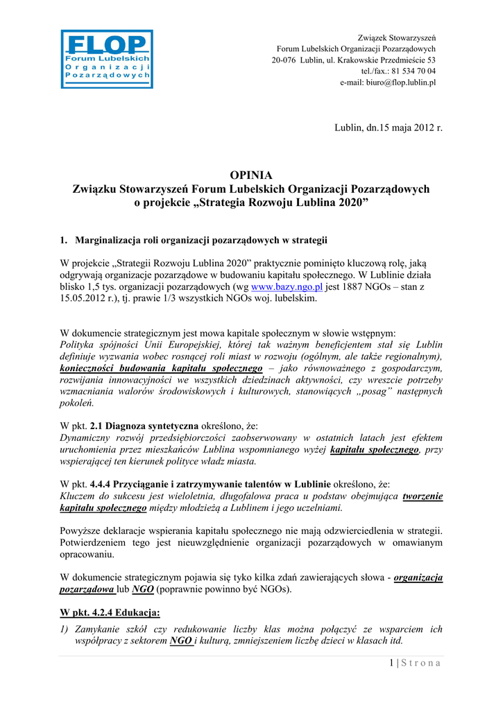 Strategia Rozwoju Lublina 2020 - Związek Stowarzyszeń Forum