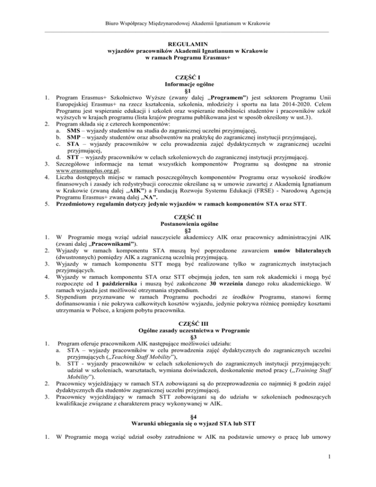 1 REGULAMIN wyjazdów pracowników Akademii Ignatianum w