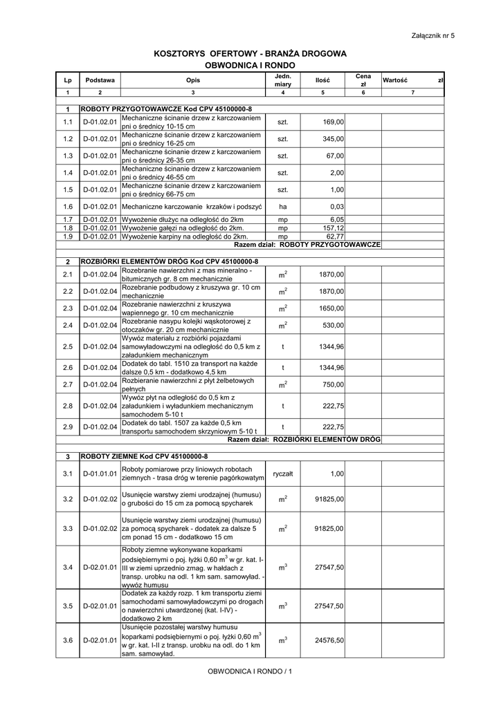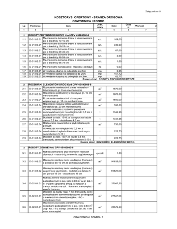 KOSZTORYS OFERTOWY - BRANśA DROGOWA OBWODNICA I