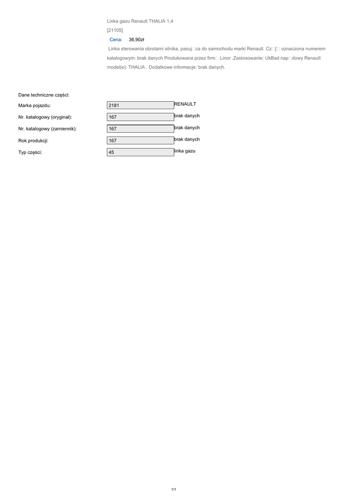 Linka gazu Renault THALIA 1,4 [21105] Cena