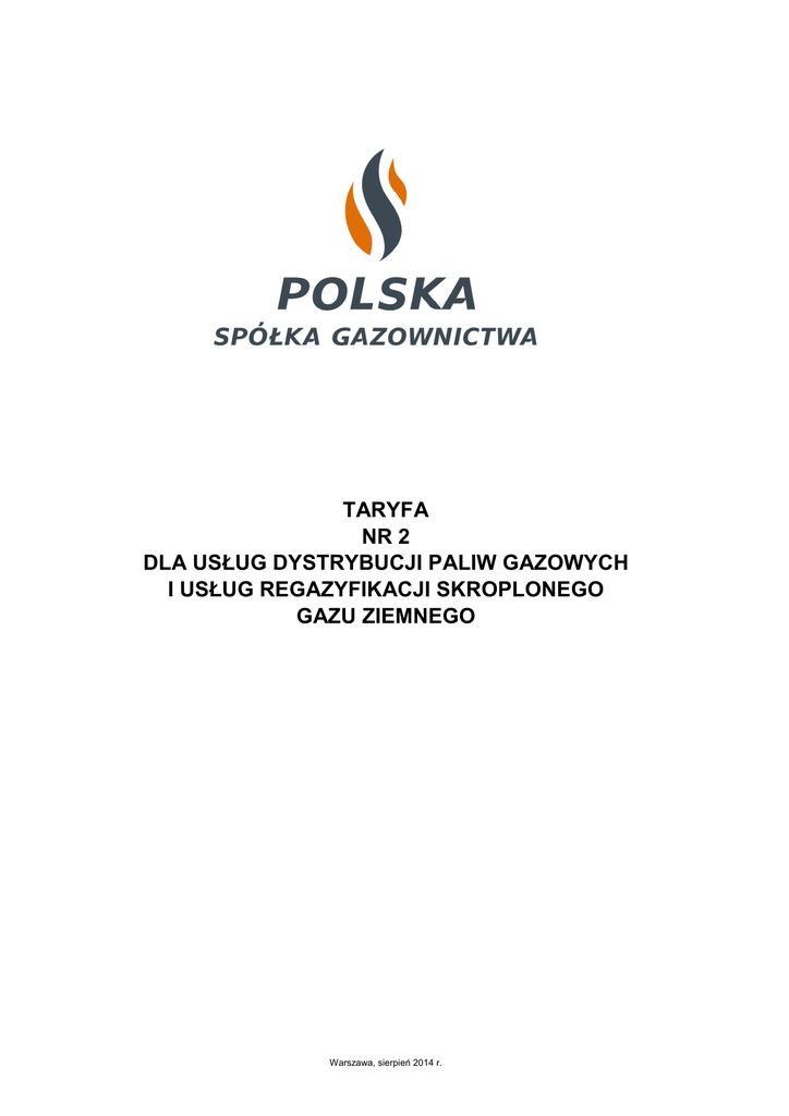 Taryfa NR 2 - Polska Spółka Gazownictwa