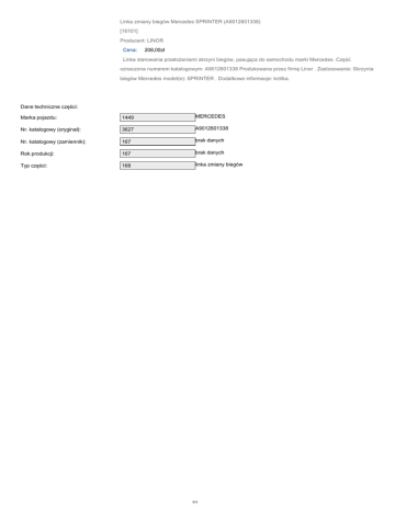 Linka zmiany biegów Mercedes SPRINTER (A9012601338) [16101] Producent: LINOR Cena: 208,00zł Linka sterowania przełożeniami skrzyni biegów, pasująca do samochodu marki Mercedes. Część oznaczona numerem katalogowym: A9012601338 Produkowana przez firmę Linor . Zastosowanie: Skrzynia biegów Mercedes model(e): SPRINTER . Dodatkowe informacje: krótka. Dane techniczne części: Marka pojazdu: 1449 MERCEDES Nr. katalogowy (oryginał): 3627 A9012601338 Nr. katalogowy (zamiennik): 167 brak danych Rok produkcji: 167 brak danych Typ części: 168 linka zmiany biegów 1/1