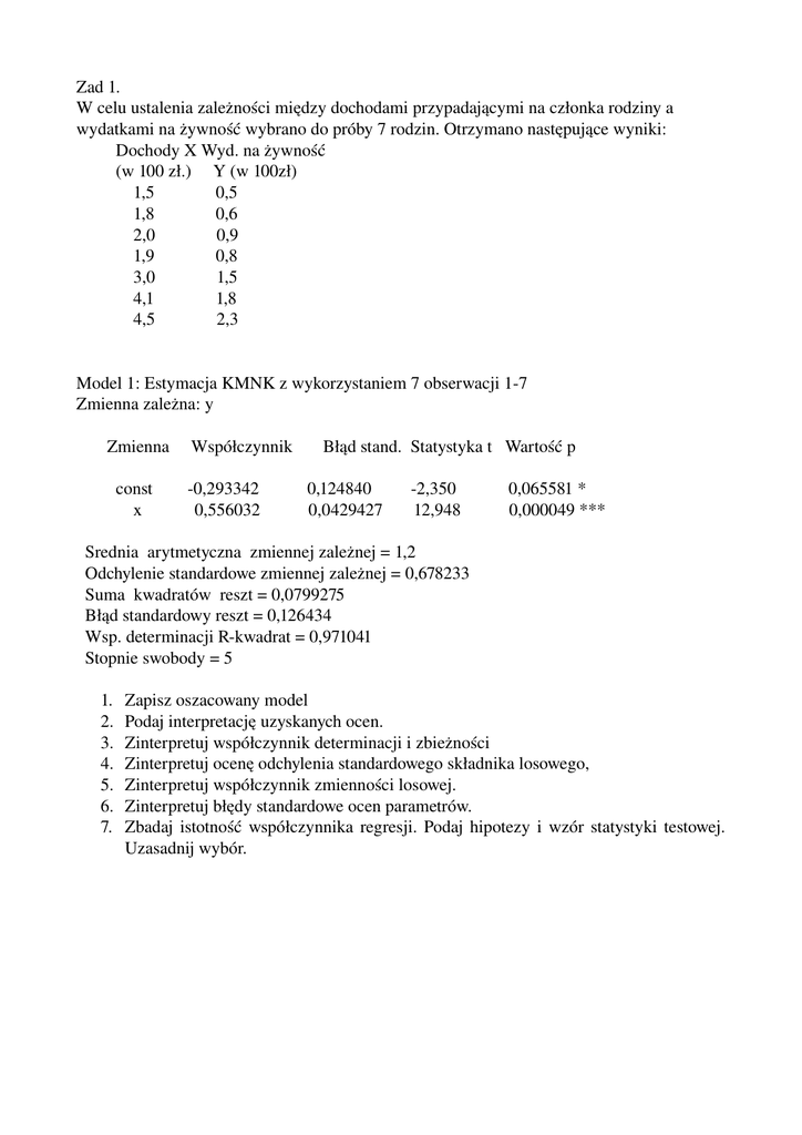 Zad 1. W celu ustalenia zależności między dochodami