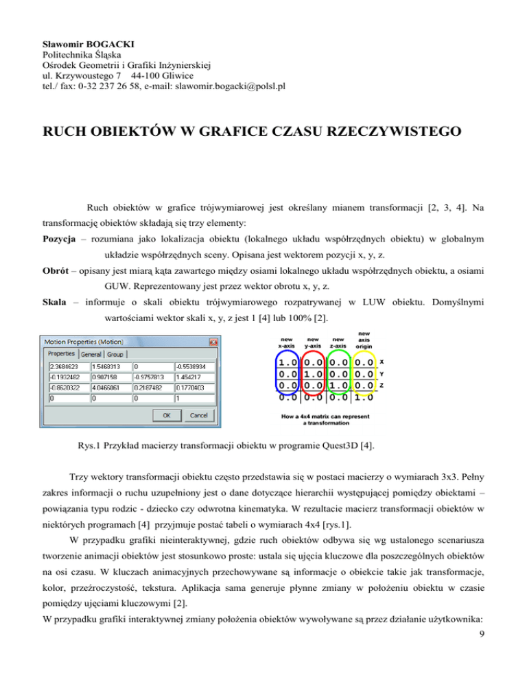 ruch obiektów w grafice czasu rzeczywistego.