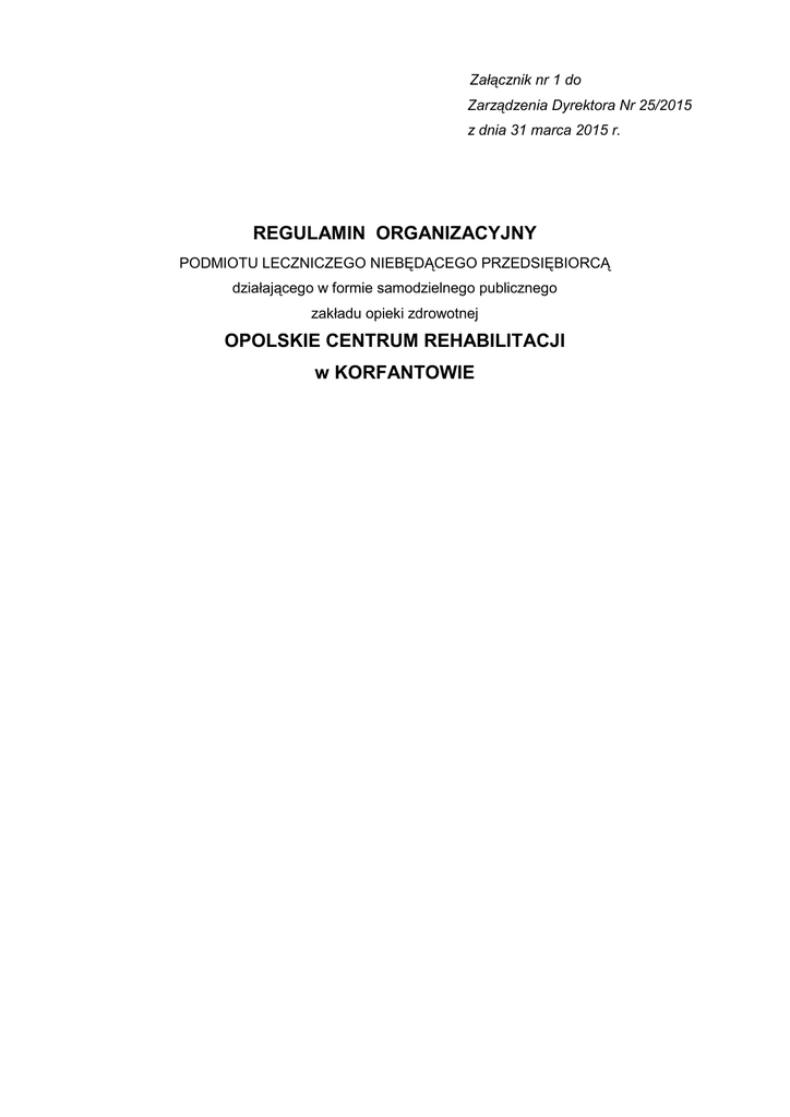 Regulamin organizacyjny 2015 - Opolskie Centrum Rehabilitacji