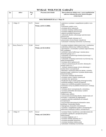 WYKAZ WOLNYCH GARAŻY