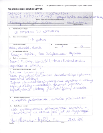 Progrom zajęĆ edukocyjnych