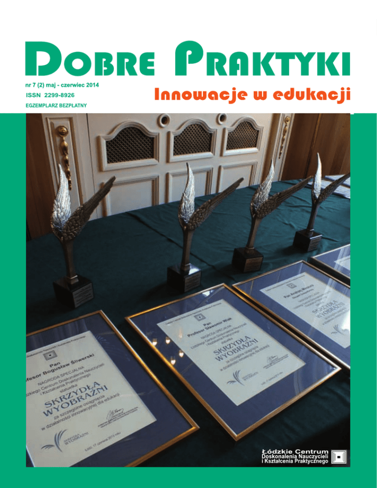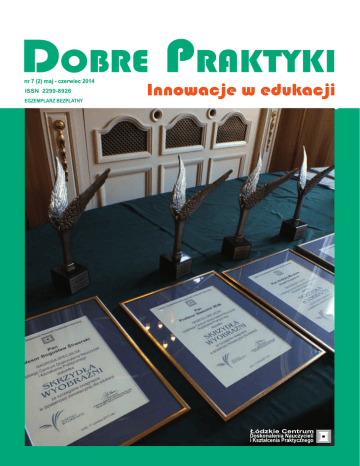 DOBRE PRAKTYKI DOBRE PRAKTYKI Przekazujemy Państwu siódmy numer naszego czasopisma, w którym zamieszczamy wyniki konkursów prac innowacyjnych nauczycieli i partnerów Łódzkiego systemu edukacji, informujemy o szczególnie ważnej konferencji krajowej „Przemiany w edukacji narodowej w kontekście relacji szkoła – rynek pracy”, a także o modelu czytania dzieciom, festiwalu bibliotek szkolnych, metodzie Webquest, konkursie „Pracodawca kreujący i wspierający edukację” i technikach efektywnego uczenia się. Polecamy również artykuły dotyczące doradztwa zawodowego edukacji statystycznej: wspominamy również piękną uroczystość stulecia Szkoły Podstawowej nr 40 w Łodzi. A ponieważ przed nami wakacje – wszystkim czytelnikom życzymy udanego wypoczynku wakacyjnego. Janusz Moos Oddajemy do rąk Czytelników siódmy już numer czasopisma „Dobre Praktyki”. Szczególnie ważne jest dla nas, jako popularyzatrów dobrych praktyk, Podsumowanie Ruchu Innowacyjnego w Edukacji, święto nauczycieli-innowatorów, twórców innowacji pedagogicznych, refleksyjnych autorów własnych koncepcji metodycznych. Ukazanie się tego numeru naszego pisma towarzyszyć będzie gali Podsumowania, toteż publikujemy tu listę zdobywców tytułów, nagród i certyfikatów. Wszystkim nagrodzonym serdecznie przy tej okazji gratulujemy. Wiosna to okres, który zapowiada niedaleki koniec roku szkolnego, to czas podsumowań, współzawodnictwa, finałów różnego typu konkursów, tak więc i na naszych łamach sporo będzie nie tylko o innowacjach i dobrych praktykach, ale także o sukcesach uczniów i ich pedagogów w rozmaitych rywalizacjach. Wiele z nich powstało jako eksperyment, dobra praktyka, który okazał się przysłowionwym „strzałem w dziesiątkę” i trwale wpisał się w rejestr popularnych wśród młodzieży szkolnej imprez. Spośród wielu ważnych wydarzeń dotyczących kształcenia zawodowego opisujemy też powstanie Łódzkiego Stowarzyszenia Kształcenia Modułowego, które ma szansę znacząco wpłynąć na rozwój szkolnictwa zawodowego także i naszym mieście, gdzie praca, a więc i właściwe do niej przygotowanie, to ważne dla łodzian kwestie. A później – później już tylko wakacje. Spotkamy się na początku roku szkolnego 2014/2015. Jacek Głębski Dyrektor Łódzkiego Centrum Doskonalenia Nauczycieli i Kształcenia Praktycznego Wybitnemu Pedagogowi, przewodniczącemu Komitetu Nauk Pedagogicznych Polskiej Akademii Nauk, profesorowi zwyczajnemu Wydziału Pedagogicznego Chrześcijańskiej Akademii Teologicznej w Warszawie i Wydziału Nauk Pedagogicznych Akademii Pedagogiki Specjalnej im. Marii Grzegorzewskiej w Warszawie, przewodniczącemu Sekcji I Nauk Humanistycznych i Społecznych Centralnej Komisji do Spraw Stopni i Tytułów, Mistrzowi Pedagogii, Ambasadorowi Innowacyjnych Idei i Praktyk Pedagogicznych, laureatowi konkursu „Skrzydła Wyobraźni”, wieloletniemu Przewodniczącemu Rady Społeczno - Doradczej Łódzkiego Centrum Doskonalenia Nauczycieli i Kształcenia Praktycznego BOGUSŁAWOWI ŚLIWERSKIEMU przekazujemy najserdeczniejsze gratulacje z okazji nadania przez Uniwersytet Marii Curie Skłodowskiej w Lublinie najwyższego tytułu Doktora Honoris Causa z życzeniami dalszych sukcesów naukowych i edukacyjnych. Dyrekcja i pracownicy ŁCDNiKP Wydawca: Łódzkie Centrum Doskonalenia Nauczycieli i Kształcenia Praktycznego ul. Kopcińskiego 29, 90-142 Łódź www.wckp.lodz.pl Adres redakcji: 90-142 Łódź, ul. Kopcińskiego 29, e-mail: [email protected] tel. 794 900 540 Konferencja PCG - Edukacja Równych Szans ......................................................................3 Podsumowanie Ruchu Innowacyjnego w Edukacji w roku szkolnym 2013/2014 ................. 4 Ogólnopolska Konferencja „Przemiany w edukacji zawodowej” ............................................... 6 Czytanie wrażeniowe - innowacyjny model czytania dzieciom tekstów literackich ..............8 Europejska wartość dodana - X lat Polski w Unii Europejskiej .............................................10 Stulecie Szkoły Podstawowej nr 40 w Łodzi .......................................................................12 Festiwal Bibliotek Szkolnych ............................................................................................... 13 Metoda WebQuest w kształceniu zawodowym ................................................................... 14 Publiczne Gimnazjum nr 32 w Łodzi: Podążając za patronem................................................16 Dzień Liczby Pi ....................................................................................................................16 III Wiosenny Tydzień Promocji Zdrowia ............................................................................17 Publiczne Gimnazjum nr 5 w Łodzi: Uczniowski Klub Nauki ............................................18 Łódzkie Łabędzie dla pracodawców ....................................................................................19 Akademia Młodych Twórców w roku szkolnym 2013/2014 ...............................................20 Szkoła Projektów w ŁCDNiKP ............................................................................................20 Rozstrzygnięcie konkursu Najlepsza lekcja na Łódzkiej Platformie Edukacyjnej ..................20 Kreatywny fryzjer .................................................................................................................21 Mapy Myśli jako technika efektywnego uczenia się .............................................................22 Edukacja statystyczna w kontekście rynku pracy ...............................................................24 Nowy wymiar doradztwa zawodowego ................................................................................25 Bajkowa Łódź Filmowa .......................................................................................................26 H