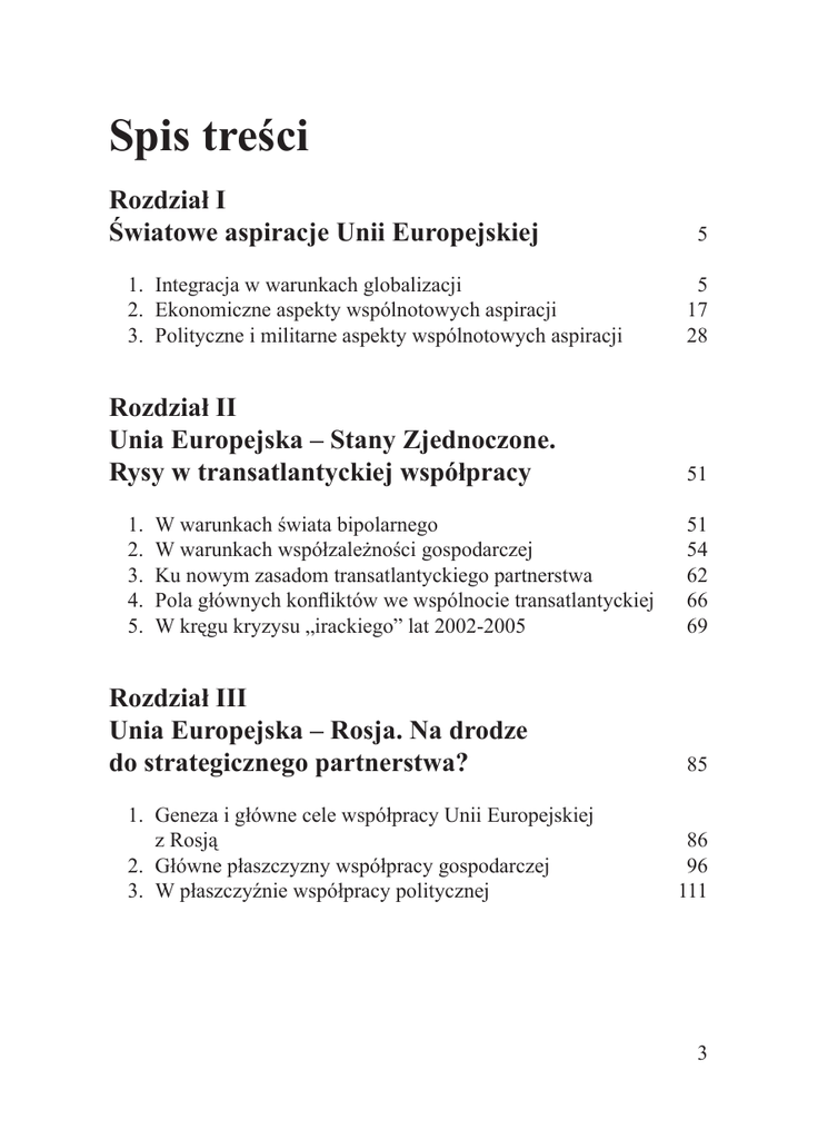 Spis treści Rozdział I Światowe aspiracje Unii Europejskiej 1. Integracja w warunkach globalizacji 2. Ekonomiczne aspekty wspólnotowych aspiracji 3. Polityczne i militarne aspekty wspólnotowych aspiracji Rozdział II Unia Europejska – Stany Zjednoczone. Rysy w transatlantyckiej współpracy 1. W warunkach świata bipolarnego 2. W warunkach współzależności gospodarczej 3. Ku nowym zasadom transatlantyckiego partnerstwa 4. Pola głównych konfliktów we wspólnocie transatlantyckiej 5. W kręgu kryzysu „irackiego” lat 2002-2005 Rozdział III Unia Europejska – Rosja. Na drodze do strategicznego partnerstwa? 1. Geneza i główne cele współpracy Unii Europejskiej z Rosją 2. Główne płaszczyzny współpracy gospodarczej 3. W płaszczyźnie współpracy politycznej 5 5 17 28 51 51 54 62 66 69 85 86 96 111 3 Rozdział IV Chiny i Azja Wschodnia w polityce Unii Europejskiej 121 1. ASEM (Asia-Europa-Meeting) 2. Współpraca Unii Europejskiej z ASEAN 3. Chiny – partnerem strategicznym w Azji 4. Japonia i Indie w azjatyckiej polityce UE 126 128 134 145 Rozdział V Unia Europejska w regionie śródziemnomorskim 1. Partnerstwo śródziemnomorskie 2. Partnerstwo eurośródziemnomorskie 3. W przededniu szóstego poszerzenia UE: Bałkany Zachodnie w polityce Brukseli 4. Europejskie aspiracje Turcji 153 153 156 167 175 Zakończenie 189 Bibliografia 193 Wybrane dokumenty Monografie i prace zbiorowe Broszury i studia naukowe Artykuły Przemówienia Prasa 193 197 198 202 207 207 Summary 209 4