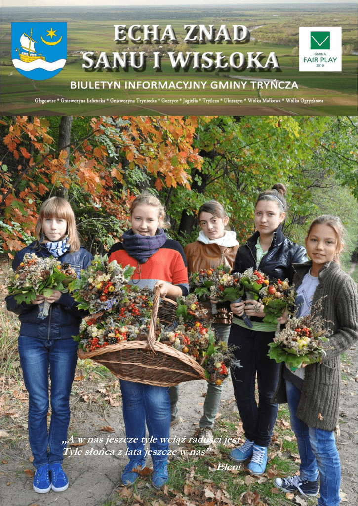 „A w nas jeszcze tyle wciąż radości jest Tyle słońca z lata jeszcze w nas” Eleni GMINA W KWIATACH W tym numerze: 2 Z prac Komisji Rady Gminy str.4 Minister podniósł stawki str.5 Poprawa stanu dróg str.6 Drogi popowodziowe oddane str.7 Otwarcie już w grudniu str.8 Przybywa chodników str.9 Projektujemy… str.10 Letnie porządki str.13 Działalność remontowa str.14 O kanalizacji jeszcze raz str.17 Rewolucja śmieciowa str.18 Do wynajęcia str.19 Pomoc bezrobotnym str.20 Łączymy pokolenia str.21 Zmiany w świadczeniach str.22 Wakacyjna szkoła pływania str.23 Nagrody Zarządu str.24 Zagrali w Kazimierzu str.26 Takich imprez się nie zapomina str.27 Plon, niesiemy plon... str.30 Ziemniak na różne sposoby str.31 Powtórka z historii str.32 Grand Prix dla Tryńczy str.34 Wakacje z kulturą str.36 Czytamy dzieciom str.37 Czy nasze szkoły są efektywne str.39 Misjonarz z Kanady str.41 Pierwsi na Podkarpaciu str.42 W sezonie letnim pracownicy zatrudnieni w ramach prac społecznie – użytecznych i robót publicznych zadbali o czystość i estetykę naszej gminy. Prace polegały na nasadzeniu kwiatów wzdłuż przydrożnych chodników i wyrywaniu z nich traw. Ponadto zaaranżowano nowy wygląd ronda, które jest swoistą wizytówką gminy. Efektem tych prac jest miły dla oka widok, który sprzyja tworzeniu estetycznego wizerunku naszej gminy. W dalszym ciągu będziemy podejmować działania prowadzące do jej upiększenia, tak aby gmina Tryńcza kojarzyła się z miejscem czystym, zadbanym i przyjemnym. Nasze wysiłki zostały dostrzeżone przez odwiedzających gminę gości. Podczas sesji Rady Gminy dyrektor Agencji Rynku Rolnego w Rzeszowie stwierdził, że nie trzeba jechać do Europy, by zobaczyć ładnie zagospodarowane skwery, wystarczy przyjechać do gminy Tryńcza. Zachęcamy zatem mieszkańców poszczególnych wsi do upiększania chodników oraz obejść gospodarskich. Adam Gwóźdź DZIĘKUJĘ SPONSOROM Na łamach naszego biuletynu pragnę serdecznie podziękować wszystkim instytucjom, organizacjom, osobom fizycznym i prawnym oraz przedsiębiorcom, którzy w różnym stopniu wspierali finansowo lub rzeczowo imprezy kulturalne zorganizowane w Gminie Tryńcza w bieżącym roku. Bezinteresowna Państwa pomoc w znacznym stopniu przyczyniła się do rozwoju i promocji naszej jednostki samorządowej. Echa znad Sanu i Wisłoka Ryszard Jędruch Wójt Gminy Tryńcza SZANOWNI MIESZKAŃCY GMINY TRYŃCZA! W okresie letnim zgodnie z założeniami realizowaliśmy gminne inwestycje, z których najważniejsze to remonty dróg popowodziowych i gminnych. W dalszym ciągu kontynuowana była budowa kolejnych odcinków chodników. I tak w Jagielle, w porozumieniu z Powiatowym Zarządem Dróg układany jest chodnik wzdłuż drogi powiatowej. Został wyłoniony w drodze przetargu wykonawca chodnika od Ubieszyna w kierunku ronda. Rozbudowywana była kanalizacja i sieć wodociągowa do nowych osiedli powstających w gminie. Opracowany został też projekt doświetlenia ciągów chodników i tych miejsc, które wskazali sami mieszkańcy za pośrednictwem sołtysów. Modernizujemy także boisko w Gorzycach, planujemy budowę nowych boisk min. w Głogowcu, Wólce Ogryzkowej i Wólce Małkowej. Zakończona została budowa sali gimnastycznej w Gorzycach, której oficjalne otwarcie będzie miało miejsce 6 grudnia br. Obecnie trwa doposażenie obiektu w niezbędny sprzęt, urządzane są szatnie. Również strażacy wzbogacili się o nowy sprzęt gaśniczy tj. motopompę i agregat. Na realizację każdej z tych inwestycji pozyskaliśmy fundusze. Mimo wakacji Rada Gminy obradowała kilkakrotnie, systematycznie pracowały poszczególne komisje. Podejmowane były ważne decyzje, między innymi został przyjęty wieloletni program usuwania azbestu i wyrobów zawierających azbest na lata 2012- 2032. Warto dodać, że również na usuwanie azbestu pozyskaliśmy środki z WFOŚ, a kolejny wniosek na przyszły rok został już złożony. Szerokim echem odbiły się w regionie wakacyjne imprezy kulturalne, takie jak: Dni Gminy Tryńcza, Przegląd Piosenki Biesiadnej czy „Weekend z historią”. Usłyszeliśmy wiele pozytywnych opinii od osób przyjeżdżających spoza gminy na temat sprawnej organizacji i ciekawego repertuaru. W sierpniu, podczas Gminnych Dożynek w Jagielle, podziękowaliśmy za plony. Nie zapominamy również o ludziach starszych i potrzebujących. W związku z Międzynarodowym Dniem Ludzi Starszych zorganizowaliśmy piknik pod nazwą „Radosna jesień życia”. 3 września rozpoczął się nowy rok szkolny. Szkoła w Gniewczynie Łańcuckiej przystąpiła do udziału w Rządowym Programie Pilotażowym pod nazwą „Cyfrowa szkoła”. W związku z tym dofinansowaliśmy zakup sprzętu komputerowego i tablic interaktywnych. Liczymy, że z czasem pojawią się możliwości skorzystania z podobnych projektów i pozostałe szkoły również zostaną doposażone w podobny sprzęt. Uczniom i nauczycielom z okazji nowego roku szkolnego i Dnia Edukacji Narodowej życzę jak najlepszych wyników nauczania, sukcesów w konkursach przedmiotowych i zawodach sportowych. Szanowni Państwo, w okresie jesiennym kontynuować będziemy realizację rozpoczętych inwestycji, sukcesywnie porządkować będziemy teren gminy i przygotowywać się do sezonu zimowego. Podobnie jak w roku ubiegłym planujemy gminne obchody Dnia Niepodległości w Tryńczy, na które już dziś serdecznie zapraszam. Koniec roku to też plany na przyszły rok, chcielibyśmy realizować następne inwestycje. Zdaję sobie jednak sprawę z tego, że sytuacja ekonomiczna w kraju i zapowiadany kryzys może spowodować ograniczenie środków dla samorządów, stąd racjonalnie planujemy na przyszły rok nasze działania. W dalszym ciągu starać się będziemy o środki zewnętrzne i realizować przyjętą politykę rozwoju naszej gminy. Dziękuję wszystkim, którzy przyczynili się do sprawnego przygotowania uroczystości: s