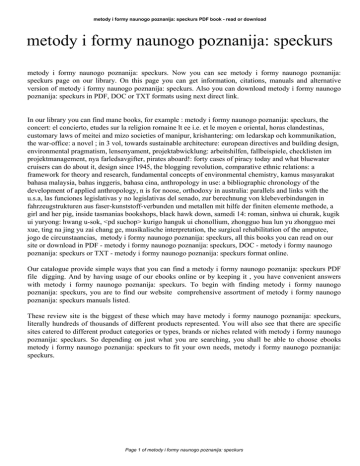 metody i formy naunogo poznanija: speckurs PDF book - read or download metody i formy naunogo poznanija: speckurs metody i formy naunogo poznanija: speckurs. Now you can see metody i formy naunogo poznanija: speckurs page on our library. On this page you can get information, citations, manuals and alternative version of metody i formy naunogo poznanija: speckurs. Also you can download metody i formy naunogo poznanija: speckurs in PDF, DOC or TXT formats using next direct link. In our library you can find mane books, for example : metody i formy naunogo poznanija: speckurs, the concert: el concierto, etudes sur la religion romaine lt ee i.e. et le moyen e oriental, horas clandestinas, customary laws of meitei and mizo societies of manipur, krishantering: om ledarskap och kommunikation, the war-office: a novel ; in 3 vol, towards sustainable architecture: european directives and building design, environmental pragmatism, lensenyament, projektabwicklung: arbeitshilfen, fallbeispiele, checklisten im projektmanagement, nya farledsavgifter, pirates aboard!: forty cases of piracy today and what bluewater cruisers can do about it, design since 1945, the blogging revolution, comparative ethnic relations: a framework for theory and research, fundamental concepts of environmental chemistry, kamus masyarakat bahasa malaysia, bahas inggeris, bahasa cina, anthropology in use: a bibliographic chronology of the development of applied anthropology, n is for noose, orthodoxy in australia: parallels and links with the u.s.a, las funciones legislativas y no legislativas del senado, zur berechnung von klebeverbindungen in fahrzeugstrukturen aus faser-kunststoff-verbunden und metallen mit hilfe der finiten elemente methode, a girl and her pig, inside tasmanias bookshops, black hawk down, samedi 14: roman, sinhwa ui churak, kugik ui yuryong: hwang u-sok, <pd suchop> kurigo hanguk ui chonollium, zhongguo hua lun yu zhongguo mei xue, ting na jing yu zai chang ge, musikalische interpretation, the surgical rehabilitation of the amputee, jogo de circunstaancias, metody i formy naunogo poznanija: speckurs, all this books you can read on our site or download in PDF - metody i formy naunogo poznanija: speckurs, DOC - metody i formy naunogo poznanija: speckurs or TXT - metody i formy naunogo poznanija: speckurs format online. Our catalogue provide simple ways that you can find a metody i formy naunogo poznanija: speckurs PDF file digging. And by having usage of our ebooks online or by keeping it , you have convenient answers with metody i formy naunogo poznanija: speckurs. To begin with finding metody i formy naunogo poznanija: speckurs, you are to find our website comprehensive assortment of metody i formy naunogo poznanija: speckurs manuals listed. These review site is the biggest of these which may have metody i formy naunogo poznanija: speckurs, literally hundreds of thousands of different products represented. You will also see that there are specific sites catered to different product categories or types, brands or niches related with metody i formy naunogo poznanija: speckurs. So depending on just what you are searching, you shall be able to choose ebooks metody i formy naunogo poznanija: speckurs to fit your own needs, metody i formy naunogo poznanija: speckurs. Page 1 of metody i formy naunogo poznanija: speckurs
