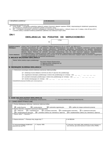DN-1 DEKLARACJA NA PODATEK OD NIERUCHOMOŚCI