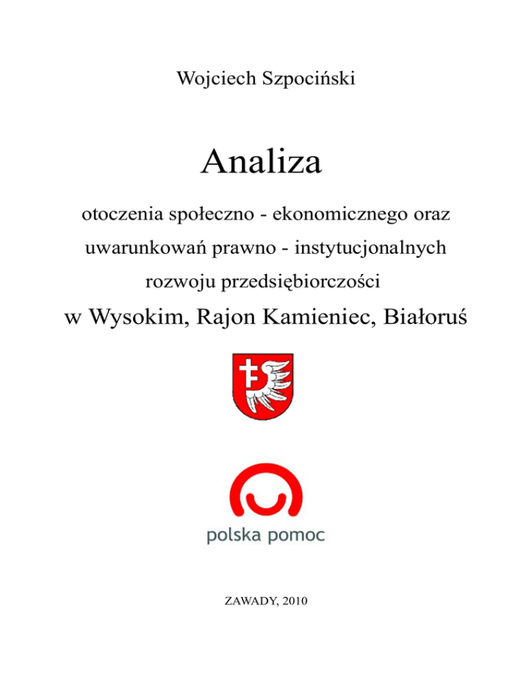 Wojciech Szpociński Analiza otoczenia społeczno - ekonomicznego oraz uwarunkowań prawno - instytucjonalnych rozwoju przedsiębiorczości w Wysokim, Rajon Kamieniec, Białoruś ZAWADY, 2010 Niniejsza analiza została sporządzona w celu zdefiniowania potrzeb szkoleniowych beneficjentów projektu nr 622/2010 Polska Pomoc 2010, Dobre zarządzanie gminą, jako sposób na wspieranie lokalnej przedsiębiorczości. Transfer polskich dobrych praktyk na Białoruś w ramach. Analiza została oparta na badaniach terenowych przeprowadzonych w czerwcu i lipcu 2010 w Wysokim (Białoruś). Metoda badawczo-diagnostyczna: Na potrzeby analizy przeprowadzono 16 indywidualnych, niestrukturyzowanych otwartych wywiadów pogłębionych (In-Depth-Interview). Badanie przeprowadzono na reprezentatywnej próbie: 6 respondentów było urzędnikami, 10 przedsiębiorcami prowadzącymi działalność gospodarczą na terenie podległym władzy lokalnej. Pozyskany materiał został poddany krytycznej analizie jakościowej. Niezależnie prowadzący badania protokołował obserwacje w formie tzw. dziennika obserwacyjnego, wykorzystano również również jakościowe metody określania i szacowania lokalnego potencjału rozwojowego/jakości kapitału ludzkiego/społecznego, w tym również aktywności i spójności wspólnot i instytucji działających na badanym obszarze(community visioning, asset mapping). Analiza sytuacji społeczno-gospodarczej na obszarze rajonu kamienieckiego, ze szczególnym uwzględnieniem specyfiki gorsawietu w Wysokim w przeważającej mierze bazuje na: danych własnych pozyskanych przedsiębiorcami) lub w trakcie wizyty diagnostyczno-szkoleniowej informacjach/dokumentach lokalnego Komitetu (spotkania z Wykonawczego (gorispołkom).Dane te zostały uzupełnione o dane wtórne pozyskane bądź za pośrednictwem Internetu (materiały właściwych organów administracyjnych, statystycznych, rejestracyjnych, raporty typu Doing Business/podręczniki inwestora, materiały związków i zrzeszeń przedsiębiorców); bądź też z baz/zestawień danych/aktów prawnych. Konkluzje badawcze: 1.Na Białorusi dynamicznie wzrasta liczba przedsiębiorstw, w tym małych i średnich firm – (sektor obejmuje ok 95% ogółu przedsiębiorstw prywatnych). W dwóch kwartałach 2010 liczba nowo zarejestrowanych przedsiębiorstw i indywidualnych przedsiębiorców zwiększyła się o ok. 12%. W roku 2009 w stosunku do 2008 ich liczba wzrosła o ponad 15 proc., co świadczy o powodzeniu sektorowej liberalizacji obrotu gospodarczego i pewnym, choć nieznacznym polepszeniu otoczenia dla biznesu na Białorusi: uproszczenia i obniżenia podatku obrotowego od działalności gospodarczej MŚP do 10 proc. oraz ograniczania barier administracyjnych, w tym zmniejszenia/optymalizacji barier koncesyjno - certyfikacyjnych, usprawnienia gospodarki nieruchomościami, ograniczenia regulacji cen i marż. Tym niemniej, udział sektora MŚP w PKP w 2009 roku wyniósł ok 11 proc., a więc wciąż bardzo mało. W ubiegłym roku zatrudniały one 12,5 proc. ogółu pracowników. Zdecydowana większość MŚP skoncentrowana jest w Mińsku i dużych miastach/centrach regionalnych, co zaburza zrównoważony rozwój kraju. Dysproporcje w aktywności gospodarczej między metropolią a prowincją pogłębiają się. 1 2.Reformy gospodarcze zapowiadane od 2007, a wdrażane na większą skalę od 2008 roku, choć w pewnych obszarach przynoszą wymierne rezultaty, bez optymalizacji modelu zarządczo - instytucjonalnego nie dadzą oczekiwanych efektów. Zmiany, które w intencji mają zliberalizować obrót gospodarczy i pobudzać przedsiębiorczość, a nawet decentralizować pewne decyzje i środki, w praktyce częstokroć prowadzą do dalszego przeregulowania stosunków wewnątrz gospodarki i jeszcze bardziej komplikują otoczenie gospodarcze, w którym porusza się przedsiębiorca. 3.Problemy ze stanowieniem spójnego prawa i jego egzekucją wynikają ze zbyt dużej liczby szczegółowych regulacji. Inicjatywy liberalizacyjne koncentrują się na bardzo wąskich specyficznych klasach przypadków. Próby reform opartych na tworzeniu nawet bardziej korzystnych, ale szczegółowych uregulowań, znacząco ograniczają efekt liberalizacyjny: odwołują się do zbyt dużej ilości innych aktów prawnych, w tym niższego rzędu – instrukcji, zarządzeń i innych wewnętrznych regulacji instytucjonalnych (które często odwracają pierwotny zamysł liberalizacyjny, a zdarza się, że są w ogóle niejawne 2, co prowadzi do dalszej niespójności i nieprzewidywalności obrotu); względy społeczno - gospodarcze nakazują ograniczenia zakresu liberalizacji, przy czym niejednokrotnie uzasadnione systemowe i lokalne kompromisy społeczne/socjalne znacząco komplikują sytuację przedsiębiorcy; Od generalnej zasady ustanowionej prawem obowiązują zbyt duże ilości wyłączeń/odstępstw. 4.Liberalizacja poprzez wyłączanie stosowania. Na Białorusi coraz więcej przewidzianych prawem szczegółowych uregulowań krępujących rozwój przedsiębiorczości i ograniczających swobodę prowadzenia działalności gospodarczej w ogóle nie jest egzekwowanych (martwe 1 2 Country Report Belarus, Economist Intelligence Unit, May 2010 Ośrodek badawczy IPM dotarł do niejawnych instrukcji dotyczących zasad importu środków produkcji na rzecz władz publicznych i wszelkich podmiotów gospodarczych z udziałem skarbu państwa. Regulacja ta nakłada na wszystkie powyższe instytucje obowiązek każdorazowego pozyskiwania indywidualnej zgody właściwego ze względu na kompetencje szefa wydziału na poziomie oblasti na zakup importowanych środków produkcji/materiałów. Regulacja nie była nigdzie publikowana, a biorąc pod uwagę skalę własności państwowej w gospodarce, w ogromnym stopniu zmienia/deformuje relacje rynkowe. prawo) lub funkcjonuje wyłącznie na zasadzie formalnego obowiązku przekładania do akceptacji dokumentów (sektorowe przepisy dotycząc