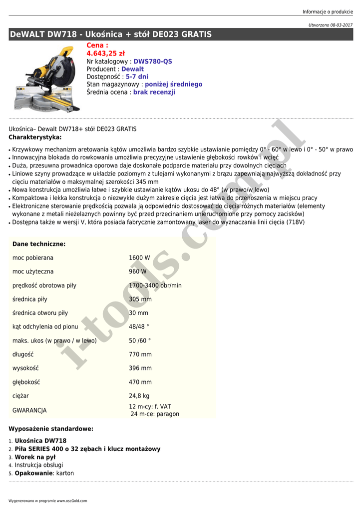 DeWALT DW718 - Ukośnica + stół DE023 GRATIS - i