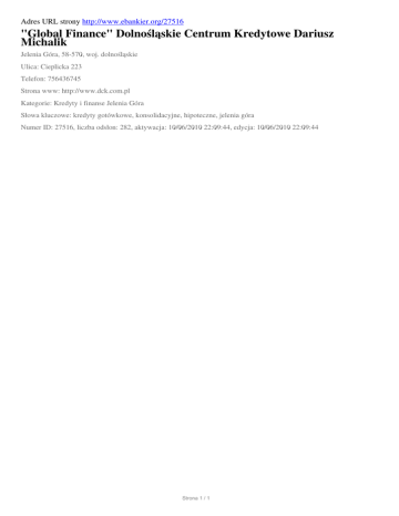 "Global Finance" Dolnoslaskie Centrum Kredytowe Dariusz Michalik