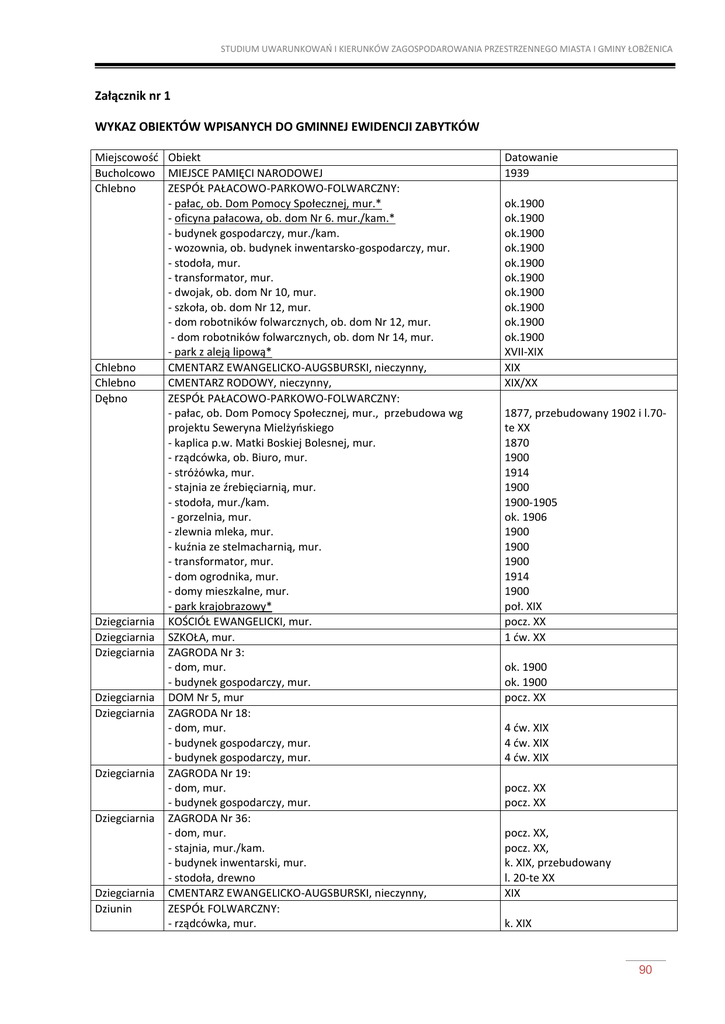 Załącznik nr 1 WYKAZ OBIEKTÓW WPISANYCH