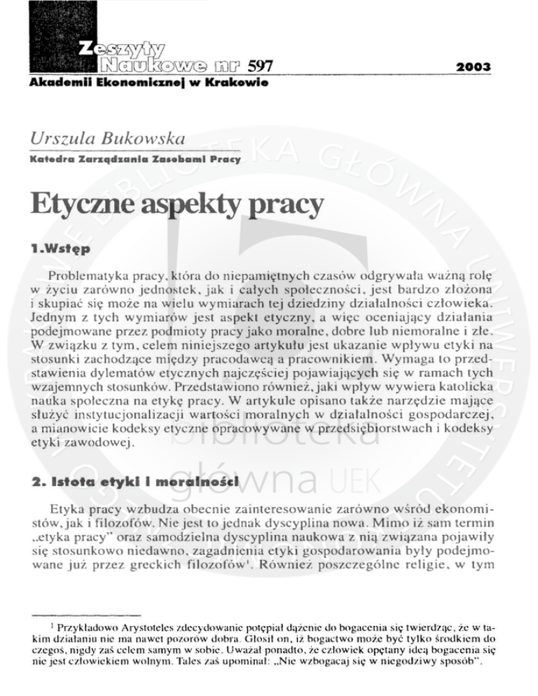 "etyka pracy" oraz samodzielna dyscyplina naukowa z nią zwi,)zana pojawiły