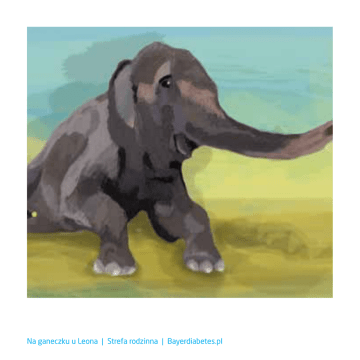 Na ganeczku u Leona | Strefa rodzinna | Bayerdiabetes.pl Na ganeczku u Leona jakiś urwis zasiał... słonia! Leon myśli: “Kwiat czy słoń, z sercem trzeba podejść doń.” Z troską go podlewa co dzień, dba, by biedak nie spał w chłodzie, karmi słonia marchewkami i nawozi go czasami. Słonik rośnie wszerz i wzdłuż, trąba mu kiełkuje już, a brzuch rzuca cień na kwiatki i rzeżuszkę u sąsiadki. Gdy w południe słonko świeci, pot słoniowi ciurkiem leci. Leon kupił więc parawan (choć sąsiadka wszczęła raban), rach, ciach, trach i po kłopocie – teraz słonik się nie spoci. Na ganeczku u Leona | Strefa rodzinna | Bayerdiabetes.pl Łapie muszki, strzyże uszkiem, czasem skubnie cud rzeżuszkę lub zatrąbi coś donośnie. I wciąż rośnie, rośnie, rośnie... Już donica trzeszczy w szwach, wreszcie z hukiem pęka: Trach! Ganek robi się za ciasny, bo słoń rozmiar ma słoniasty! Wokół gapiów całe mrowie... Leon drapie się po głowie... – Co mam począć?! Ktoś mu radzi, żeby słonia gdzieś przesadził. Do ogródka... lub do parku... Można go też dać w podarku panu, który gra w jazz-bandzie. Może w bandzie słoń grać będzie? Ale słoń ma inne plany. – Chciałbym – trąbi – dla odmiany choć przez chwilę być motylem. Więc odfrunął. No i tyle. Na ganeczku u Leona | Strefa rodzinna | Bayerdiabetes.pl