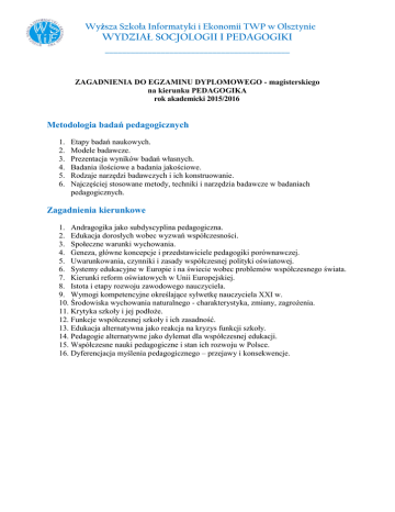 ZAGADNIENIA DO EGZAMINU DYPLOMOWEGO Magisterskiego na