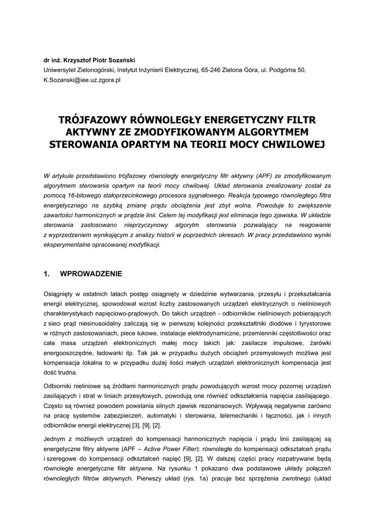 trójfazowy równoległy energetyczny filtr aktywny ze