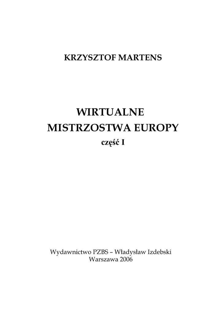 KRZYSZTOF MARTENS WIRTUALNE MISTRZOSTWA EUROPY część I Wydawnictwo PZBS – Władysław Izdebski Warszawa 2006 Copyright © Krzysztof MARTENS Korekta merytoryczna: Jan CHODOROWSKI Projekt okładki: Aleksandra BERKOWSKA Wydawnictwo PZBS Władysław Izdebski 03-414 Warszawa ul. Wileńska 6/29 ISBN – 83-87894-50-8 SPIS TREŚCI 3 SPIS TREŚCI Wirtualne Drużynowe Mistrzostwa Europy... 5 1. Runda I – mecz z Chorwacją........................... 10 1.2. Rozwiązania problemów 1-10........................... 12 2. Runda II – mecz z Bułgarią.............................. 22 2.1. Rozwiązania problemów 11-20......................... 24 3. Runda III – mecz z Hiszpanią.......................... 34 3.1. Rozwiązania problemów 21-30.......................... 36 4. Runda IV – mecz z Francją............................... 46 4.1. Rozwiązania problemów 31- 40....................... 48 5. Runda V – mecz z San Marino......................... 58 5.2. Rozwiązania problemów 41- 50........................ 60 6. Runda VI – mecz z Libanem............................ 70 6.1. Rozwiązania problemów 51- 60........................ 72 7. Runda VII – mecz z Izraelem........................... 82 7.1. Rozwiązania problemów 61- 70......................... 84 8. Runda VIII – mecz z Belgią............................. 94 8.1. Rozwiązania problemów 71- 80....................... 96 4 K. Martens Wirtualne Mistrzostwa Europy 9. Runda IX – mecz z Irlandią........................... 106 9.1. Rozwiązania problemów 81- 90..................... 108 10. Runda X – mecz z Rosją.................................. 118 10.1. Rozwiązania problemów 91- 100................... 120 11. Runda XI – mecz z Liechtensteinem.............. 131 11.1. Rozwiązania problemów 101- 110.................. 133 12. Runda XII – mecz ze Szkocją......................... 144 12.1. Rozwiązania problemów 111- 120.................. 146 13. Runda XIII – mecz z Anglią............................ 156 13.1. Rozwiązania problemów 121- 130.................. 158 14. Runda XIV – mecz z Łotwą............................. 170 14.1. Rozwiązania problemów 131- 140.................. 172 15. Runda XV – mecz z Austrią............................ 185 15.1. Rozwiązania problemów 141- 150................... 187 16. Runda XVI – mecz z Belgią............................ 197 16.1. Rozwiązania problemów 151- 160.................. 199 17. Runda XVII – mecz z Portugalią................... 211 17.1. Rozwiązania problemów 161- 170.................. 213 WIRTUALNE DRUŻYNOWE MISTRZOSTWA EUROPY 5 WIRTUALNE DRUŻYNOWE MISTRZOSTWA EUROPY Może kiedyś nareszcie doczekam pociechy, Gdy wiedza o rozgrywce zabłądzi pod strzechy. Niechaj każde pachole, które gęsi pasie Wie, czy król jest w impasie, czy też w ekspasie. Niechaj nie będzie tajemnic dla Sarmatów nacji Przy podwójnym przymusie, czy eliminacji. Niech wie, zawsze konkretnie, każda polska dójka Jaką korzyść przy wpustce może przynieść dwójka. (Szopka Brydżowa, miesięcznik BRYDŻ, grudzień 1963) Drodzy Czytelnicy! Prowadziłem szkolenia wielu reprezentacji narodowych przy gotowując je do imprez mistrzowskich. Rozgrywka była jednym z elementów, najbardziej atrakcyjnym i lubianym. Zawodnik mający ambicje dorównać najlepszym musi mieć ogromną wiedzę. Ilość czasu przy stole jest limitowana. Gracz, który poświęci kilka minut na techniczną analizę rozgrywki, nie będzie w stanie: 1. Przeprowadzić analizy pierwszego wistu. 2. Operować umiejętnie blotkami tak, aby utrudnić ob rońcom odczytanie ich sygnałów wistowych. 3. Stosować zagrań psychologicznych. 4. Korzystać z obecności przy stole (table presence). 5. Kamuflować swoich zamiarów. Dłuższy namysł rozgrywającego daje też sporo czasu obrońcom na ich analizę. Sprawna i szybka rozgrywka prowokuje przeciwników do zagrań rutynowych. Wreszcie – problemy kondycyjne, których nie zauważamy w pierwszych dniach mistrzostw, pojawiają się w dalszej fazie. 6 K. Martens Wirtualne Mistrzostwa Europy Jak można sobie z tym poradzić? Wybitny brydżysta powinien po kilkunastu sekundach wiedzieć o wszystkich problemach technicznych, z którymi może się zetknąć w konkretnym rozdaniu. Wiedzieć, a nie dopiero je wyszukiwać i analizować. Podobnie sytuacja wygląda na szkolnych lekcjach matematyki. Uczniowie rozwiązując piętnaste zadanie z tego samego działu robią to automatycznie. Wzór, schemat, motyw jest znany – trzeba tylko wstawić inne dane. Nie znając wzoru – musimy sami go zbudować. Ile marnujemy czasu i wysiłku? Szkolenie rozgrywki polega na tym samym co nauka matematyki. Najpierw uczymy się wzorów i schematów, a następnie umiejętności analitycznego myślenia. Ważne jest, by rozwiązywane problemy słu żyły priorytetowemu celowi nauczania rozgrywki – wyrobieniu umiejętności twórczego i krytycznego myślenia i precyzyjnej analizy. Często w swojej karierze spotykałem brydżystów, którzy bezbłęd nie ustawiali najbardziej skomplikowane przymusy i wpustki, nie potrafili jednak zaplanować właściwie komunikacji, czy bezpiecznie rozegrać kluczowego koloru. Nawet początkujący brydżysta umie trochę rozgrywać. Ale roz grywki nie można się nauczyć spontanicznie, tak jak uczymy się języka ojczystego. Aby się nauczyć rozgrywki, potrzebny jest pewien świadomy wysiłek w tym kierunku. Odpowiednio i mądrze się ucząc, każdy gracz może swoją rozgrywkę poprawić, a niektórzy mogą przy tym ujawnić specjalny talent. Może Ty jesteś jedną z takich osób? Jak się o tym przekonać? Nawet utalentowane osoby muszą podjąć pewien systematyczny wysiłek i poświęcić rozgrywce pewien czas. Jeśli to będzie 15 minut każdego dnia, odczujesz wyraźny postęp już po kilku tygodniach. Nauka rozgrywki jest pracą, którą trzeba wykonywać systematycz nie. Trzeba poznać i zapamiętać podstawowe motywy, poznać, a na wet zg