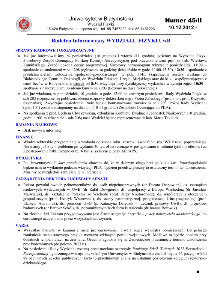 45 - Wydział Fizyki - Uniwersytet w Białymstoku