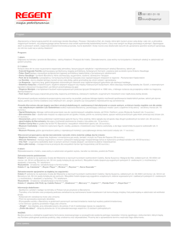 061 851-31-18 [email protected] Program Zapraszamy w fascynującą podróż do szalonego świata Gaudiego, Picassa i Salvadora Dali, do miasta, które tętni życiem przez całą dobę i cały rok, a atmosfera magicznych fontann, czy pasjonującego tańca flamenco oraz smaki wyśmienitej katalońskiej kuchni, Cavy oraz sangrii na długo pozostają w pamięci. Zapierające dech w piersiach widoki, wspaniała śródziemnomorska przyroda, liczne dyskoteki i kluby nocne oraz doskonałe warunki do uprawiania sportów wodnych sprawiają, że nikt nie nudzi się w stolicy Katalonii! Program: 1 dzień: Odprawa na lotnisku i przelot do Barcelony - stolicy Katalonii. Przejazd do hotelu. Zakwaterowanie, czas wolny na korzystanie z lokalnych atrakcji w zależności od godzin przylotu. 2 i 3 dzień: Kolejne dwa dni to czas na poznanie wspaniałej atmosfery, fascynujących zabytków i najciekawszych atrakcji Barcelony, takich jak - Kościół Sagrada Familia zachwycający symboliczną, bogatą architekturą, fantazyjnymi formami, uważany jest za dzieło życia Antonio Gaudiego - Pałac Guell będący niezwykłym połączeniem typowej architektury katalońskiej z kunsztownymi zdobieniami - Domy Gaudiego - symbole Barcelony, które zachwycają, są genialne, szalone, dziwaczne i falujące - Park de la Ciutadella z przepiękną i romantyczną fontanną Cascada oraz najważniejszym miejscem w regionie - Parlamentem Katalońskim - La Rambla - słynny deptak tętniący życiem przez całą dobę, gdzie gromadzą się uliczni artyści i sprzedawcy - La Boqueria - ogromny targ, gdzie bogactwo różnorodnych owoców oraz najdziwniejszych gatunków ryb zachwyci każdego - Dzielnica Gotycka z malowniczymi, wąskimi alejkami wijącymi się między historycznymi budynkami, które otaczają niezwykłą katedrę św. Eulalli, z wewnętrznym ogrodem otoczonym krużgankiem, po którym przechadzają się gęsi - Wzgórze Montjuic z kompleksem budowli wykorzystywanych podczas Igrzysk Olimpijskich w 1992 roku, z którego roztacza się przepiękny widok na magiczną Stolicę Katalonii - Park Guell imponujący wspaniałą przyrodą, bajeczną architekturą, ciekawymi rzeźbami, oryginalnymi mozaikami oraz najdłuższą ławką świata W przerwach podczas zwiedzania proponujemy czas wolny na posiłek, podczas którego będzie możliwość spróbowania katalońskich potraw, takich jak słynne tapas, paella czy Crema Catalana oraz lokalnych win, sangrii, carajillo czy Cavy(płatne indywidualnie wg zamówienia). Ponadto Barcelona oferuje bogaty wachlarz atrakcji dodatkowych, realizowanych fakultatywnie w czasie wolnym, w którym każdy znajdzie coś dla siebie: - rejs zabytkowym statkiem Las Golondrinas wzdłuż wybrzeża Barcelony, pozwalający zobaczyć miasto i port z zupełnie innej strony - od strony morza (ok. 15 euro/os.) - Ogród Botaniczny, którego roślinność przeniesie nas do najróżniejszych zakątków świata, od Chile i Kaliforni, przez Afrykę do Australii (ok. 5 euro/os.) - Barcelońskie Zoo – doskonałe miejsce na odpoczynek od zgiełku miasta, piknik na zielonej trawie, spacer wśród przeróżnych gatunków zwierząt oraz drzew (ok. 17 euro/os.) - Oceanarium, gdzie można podziwiać najróżniejsze gatunki fauny i flory wodnej, które ogląda się od spodu idąc długim podwodnym tunelem (ok. 20 euro/os.) - zjazd kolejką do Barcelonety oferujący możliwość podziwiania miasta z lotu ptaka (ok. 12 euro/os.) - Stadion Camp Nou to gratka dla fanów FC Barcelona i wszystkich miłośników sportu (ok. 25 euro/os.) - Muzeum Czekolady – misternie wykonane figurki, rzeźby, postacie z kreskówek oraz historia czekolady, a do tego nawet bilety to pyszne czekoladki (ok. 5 euro/os.) - Muzeum Picassa, gdzie zgromadzono jedną z największych kolekcji z początkowego okresu twórczości artysty (ok. 11 euro/os.) Wieczorami proponujemy słynne barcelońskie rozrywki, które świetnie oddają ducha miasta: - Magiczne fontanny – wspaniała, bajkowa i romantyczna gra wody, świateł i muzyki na Plaza de Espana (39 euro/os.) - Wieczór flamenco – kolacja regionalna z winem i pokazami tradycyjnego hiszpańskiego tańca w wykonaniu profesjonalistów (ok. 40-50 euro/os.) - City Hall – oryginalna dyskoteka-teatr w samym centrum miasta (dojazd i zamówienie płatne indywidualnie) - Mecz piłki nożnej – niezapomniane przeżycie dla wszystkich fanów ligi hiszpańskiej (od 50 euro/os.) 4 dzień: Wykwaterowanie z hotelu, czas wolny w zależności od godzin wylotu, transfer na lotnisko, przelot do Polski. Zakwaterowanie podstawowe: Hotele 3* położone na wybrzeżu Costa del Maresme w słynnych kurortach nadmorskich Calella, Santa Susanna i Malgrat de Mar, oddalonych ok. 50-400m od morza i ok. 50 km od Barcelony (ok. 50 min jazdy kolejką do jej centrum). Wszystkie hotele dysponują wygodnymi pokojami 2- osobowymi ( z możliwością 1 dostawki) z łazienką, TV i telefonem. Wyżywienie - śniadania i obiadokolacje w formie bufetu Hotele 3* np. Catalonia***, Reymr Playa***, Riviera***, Reymar***, Sorra Daurada*** Zakwaterowanie opcjonalne za dopłatą (na zapytanie): Hotele 4* położone na wybrzeżu Costa del Maresme w słynnych kurortach nadmorskich Calella i Santa Susanna, oddalonych ok. 50-400m od morza i ok. 50 km od Barcelony (ok. 50 min jazdy kolejką do jej centrum). Wszystkie hotele dysponują wygodnie urządzonymi, dobrze wyposażonymi i zadbanymi pokojami 2- osobowymi ( z możliwością 1 dostawki) z łazienką i, TV i telefonem. Wyżywienie - śniadania i obiadokolacje w formie bufetu Hotele 4* (dopłata 350 PLN) np. Calella Palace****, Onabrava****, Mercury****, Caprici****, Florida Park****, Royal Sun**** Informacje dodatkowe: - Spotkanie z pilotem nastąpi na lotnisku w Polsce lub po przylocie w Barcelonie. - Transfery z/na lotnisko oraz przejazdy podczas zwiedzania są realizowane busem/autokarem lub komunikacją miejską i/lub podmiejską w zależności od wielkości grupy. - Kolejność dni zwiedz