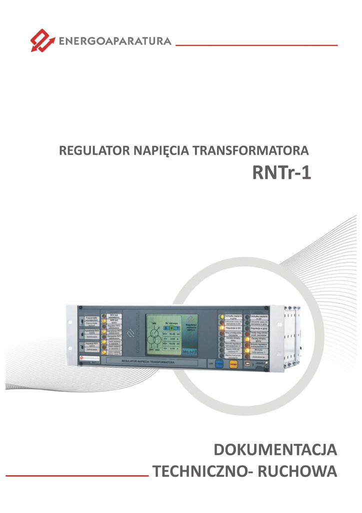 1. ZASTOSOWANIE Regulator RNTr-1 wykorzystywany jest do stabilizacji napięcia na stacjach elektroenergetycznych lub końcach energetycznych linii przesyłowych. Przeznaczony jest do zastosowania we wszystkich układach regulacji wyposażonych w podobciążeniowe przełączniki zaczepów na liniach wysokich jak i średnich napięć pracujących z uziemionym, kompensowanym bądź izolowanym punktem gwiazdowym. 2. CHARAKTERYSTYKA RNTr-1 charakteryzuje się : wieloprocesorowym systemem pomiarowo-decyzyjnym, całkowicie cyfrowym przetwarzaniem informacji, galwaniczną separacją wejść i wyjść (analogowych i dwustanowych), pracą z dwu lub trójuzwojeniowymi transformatorami, kompensacją typu RX oraz Z, ustawianą niezależnie dla poszczególnych obwodów pomiarowych, pracą w trybie automatycznym i ręcznym, zabezpieczeniem nadprądowym silnika przełącznika zaczepów, funkcjami zdalnego sterowania przełącznikiem zaczepów, raportowaniem przebiegu pracy rejestracja zdarzeń i zakłóceń, szybką i niezawodną reakcją na zmiany chwilowych wartości napięć i prądów wpływającą na wysoką jakość regulacji. 3. RODZAJE KOMPENSACJI 3.1. OPIS OGÓLNY Kompensację wprowadza się w celu automatycznego utrzymania przez regulator zadanej wartości napięcia po stronie klienta podłączonego do stacji energetycznej za pośrednictwem linii długiej (regulator usytuowany jest w dużej odległości od klienta). Dokonuje się tego dzięki znajomości parametrów technicznych linii ( sieci zasilającej klienta). Regulator posiada trzy rodzaje pracy: I. kompensacja „R i X”, II. kompensacja „Z”, III. kompensacja wyłączona. Odpowiedni dobór kompensacji pozwala na utrzymanie wymaganego poziomu napięć przez regulator niezależnie od okresowych zmian wartości mocy pobieranej z sieci przez klienta. DTR RNTr-1_03.2016 2 3.2. ZASADA DZIAŁANIA Kompensacja „R i X” Na podstawie znajomości parametrów impedancji linii (wartości składowych czynnej R i biernej X) oraz chwilowych wartości Um i IL, regulator utrzymuje żądany poziom napięcia po stronie klienta. Zasadę działania obrazuje rys.1. Rys. 1. Poglądowy schemat zasady regulacji Poniżej przedstawiono matematyczny algorytm dla kompensacji typu „R i X”: -∆ ∆E < |Um(t)+UL(t)|- |Unast| < ∆E ∆E – nastawiona przez użytkownika wartość uchybu regulacji |Unast| – żądana wartość napięcia u klienta. (Nastawa napięcia może zmieniać się w czasie w zależności od wyboru programu – dobowy, tygodniowy, miesięczny, roczny) R [Ω] - wartość rezystancji linii pomiędzy: miejscem zainstalowania regulatora, a klientem, X [Ω] - wartość reaktancji linii pomiędzy: miejscem zainstalowania regulatora, a klientem, Um ( t ) - chwilowa wartość mierzonego napięcia, IL ( t ) - chwilowa wartość mierzonego prądu, UL ( t ) – spadek napięcia na linii energetycznej, Jeżeli wartość napięcia |Um(t)+UL(t)|- |Unast| jest dodatnia i większa od E to regulator wysyła impuls na zmniejszenie numeru zaczepu transformatora. Jeżeli wartość|Um(t)+UL(t)|- |Unast| jest ujemna i większa od E to regulator wysyła impuls na zwiększenie numeru zaczepu transformatora. DTR RNTr-1_03.2016 3 Kompensacja ,,Z’’ Na podstawie znajomości spadku napięcia UL na linii dla obciążenia znamionowego ILN oraz chwilowych wartości Um(t) i IL(t), regulator utrzymuje żądany poziom napięcia po stronie klienta. Zasadę działania obrazuje rys.2. Rys. 2. Poglądowy schemat zasady regulacji Poniżej przedstawiono matematyczny algorytm dla kompensacji typu „Z”: -∆ ∆E < |Um(t)| + (|IL|/|In|)|∆Unas|-|Unast| < ∆E ∆E – nastawiona przez użytkownika wartość uchybu regulacji ∆Unas – spadek napięcia na linii przy znamionowym prądzie (nastawa) |Unast| – żądana wartość napięcia u klienta. (Nastawa napięcia może zmieniać się w czasie w zależności od wyboru programu – dobowy, tygodniowy, miesięczny, roczny) IL ( t ) - chwilowa wartość mierzonego prądu linii, In ( t ) – wartość znamionowego prądu dla linii, UL ( t ) – spadek napięcia na linii energetycznej, Jeżeli wartość napięcia |Um(t)+UL(t)|- |Unast| jest dodatnia i większa od ∆E, regulator wysyła impuls na zmniejszenie numeru zaczepu transformatora. Jeżeli wartość |Um(t)+UL(t)|- |Unast| jest ujemna i większa od ∆E, regulator wysyła impuls na zwiększenie numeru zaczepu transformatora. DTR RNTr-1_03.2016 4 Kompensacja wyłączona W trybie pracy bez kompensacji regulator utrzymuje żądany poziom napięcia po stronie stacji energetycznej, z błędem nie przekraczającym zadanej wartości ∆E na podstawie jedynie pomiaru wartości chwilowej napięć. Zasadę działania przedstawia rys.3. Rys. 3. Poglądowy schemat zasady regulacji Poniżej przedstawiono matematyczny algorytm dla trybu pracy bez kompensacji: -∆ ∆E < |Um(t)| - |Unast| < ∆E ∆E – nastawiona przez użytkownika wartość uchybu regulacji |Unast| – nastawiona wartość napięcia na stacji elektroenergetycznej. (Nastawa napięcia może zmieniać się w czasie w zależności od wyboru programu – dobowy, tygodniowy, miesięczny, roczny) Um ( t ) - chwilowa wartość napięcia mierzonego, DTR RNTr-1_03.2016 5 4. BUDOWA Regulator napięcia RNTr-1 wykonany jest w obudowie kasetowej 19’’/3U/240. Regulator standardowo wyposażony jest w 3 karty wejściowe i 2 karty wyjściowe po 8 zestyków. Każdy regulator wyposażony jest w 24 dwukolorowe diody LED (żółto-czerwone) o średnicy 8 mm sygnalizujące zakłócenie (kolor wybiera się programowo). Obsługa urządzenia oparta jest o wykorzystanie wyświetlacza z panelem dotykowym co bardzo mocno wpływa na komfort pracy. Na froncie wyprowadzono 2 klawisze (KASOWANIE, PRÓBA) oraz 3 wyłączniki dwustanowe. Rys. 4. Widok urządzenia od frontu 294,0 mm 242,0 mm 132,5 mm 52,0 mm Rys. 5. Widok urządzenia z boku DTR RNTr-1_03.2016 6 Rys. 6. Widok urządzenia od strony złącz Pozycja Moduł Pin 1 2 3 4 5 6 7 8 9 