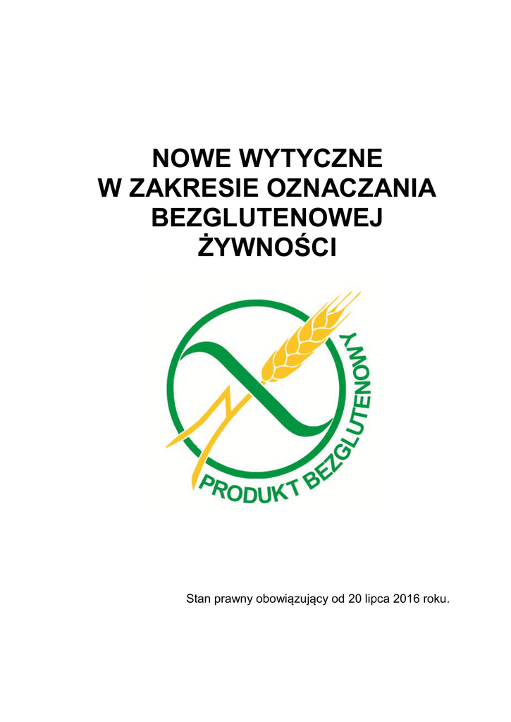NOWE WYTYCZNE W ZAKRESIE OZNACZANIA BEZGLUTENOWEJ ŻYWNOŚCI Stan prawny obowiązujący od 20 lipca 2016 roku. NOWE WYTYCZNE W ZAKRESIE OZNACZANIA BEZGLUTENOWEJ ŻYWNOŚCI Od dnia 20.07.2016 zacznie obowiązywać Rozporządzenie 2 Parlamentu Europejskiego i Rady (UE) Nr 609/2013 z dnia 12 czerwca 2013 r. w sprawie żywności przeznaczonej dla niemowląt i małych dzieci oraz żywności specjalnego przeznaczenia medycznego i środków spożywczych zastępujących całodzienną dietę, do kontroli masy ciała. Zgodnie z powyższym przepisem kwestie dotyczące definicji bezglutenowej przez Rozporządzenie Wykonawcze żywności będą wówczas Komisji (UE) Nr 828/2014 regulowane z dnia 30 lipca 2014 r. w sprawie przekazywania konsumentom informacji na temat nieobecności lub zmniejszonej zawartości glutenu w żywności. Zgodnie z nowymi przepisami dozwolone są następujące sformułowania dotyczące nieobecności lub zmniejszonej zawartości glutenu w żywności oraz warunki ich stosowania: BEZGLUTENOWY - sformułowanie „bezglutenowy” można stosować wyłącznie, jeśli dana żywność w postaci sprzedawanej konsumentowi końcowemu zawiera nie więcej niż 20 mg/kg glutenu. O BARDZO NISKIEJ ZAWARTOŚCI GLUTENU - sformułowanie „o bardzo niskiej zawartości glutenu” można stosować wyłącznie, jeżeli zawartość glutenu w żywności składającej się z jednego lub większej liczby składników lub zawierającej jeden lub większą liczbę składników wytworzonych z pszenicy, żyta, jęczmienia, owsa lub ich odmian krzyżowych, które zostały specjalnie przetworzone w celu zmniejszenia zawartości glutenu, nie przekracza 100 mg/kg glutenu w żywności sprzedawanej konsumentowi końcowemu. Ponadto owies znajdujący się w żywności określanej jako bezglutenowa lub o bardzo niskiej zawartości glutenu musi być specjalnie wyprodukowany, przygotowany lub przetworzony, tak aby uniknąć zanieczyszczenia pszenicą, żytem, jęczmieniem lub ich odmianami krzyżowymi, a zawartość glutenu w takim owsie nie może przekraczać 20 mg/kg. Więcej informacji oraz dostęp do obecnie obowiązujących i nowych przepisów prawnych można znaleźć na stronie www.dietabezglutenowa.pl w dziale Produkt bezglutenowy. W razie ewentualnych pytań w tej kwestii jesteśmy do Państwa dyspozycji pod numerem telefonu 668 176 622. Stowarzyszenie Przyjaciół Chorych Na Celiakię "PRZEKREŚLONY KŁOS” Siedziba organizacji: 85-200 Bydgoszcz, ul. Łokietka 6 Adres do korespondencji: 85-950 Bydgoszcz 1, skr. poczt. nr 76 Telefon kontaktowy: 602 623 218 E-mail: [email protected] www.dietabezglutenowa.pl ● www.celiakia.eu ● www.produktbezglutenowy.pl NOWE WYTYCZNE W ZAKRESIE OZNACZANIA BEZGLUTENOWEJ ŻYWNOŚCI Załącznik 1 Stowarzyszenie Przyjaciół Chorych Na Celiakię "PRZEKREŚLONY KŁOS” Siedziba organizacji: 85-200 Bydgoszcz, ul. Łokietka 6 Adres do korespondencji: 85-950 Bydgoszcz 1, skr. poczt. nr 76 Telefon kontaktowy: 602 623 218 E-mail: [email protected] www.dietabezglutenowa.pl ● www.celiakia.eu ● www.produktbezglutenowy.pl 3 NOWE WYTYCZNE W ZAKRESIE OZNACZANIA BEZGLUTENOWEJ ŻYWNOŚCI Stowarzyszenie Przyjaciół Chorych Na Celiakię "PRZEKREŚLONY KŁOS” Siedziba organizacji: 85-200 Bydgoszcz, ul. Łokietka 6 Adres do korespondencji: 85-950 Bydgoszcz 1, skr. poczt. nr 76 Telefon kontaktowy: 602 623 218 E-mail: [email protected] www.dietabezglutenowa.pl ● www.celiakia.eu ● www.produktbezglutenowy.pl 4 NOWE WYTYCZNE W ZAKRESIE OZNACZANIA BEZGLUTENOWEJ ŻYWNOŚCI Stowarzyszenie Przyjaciół Chorych Na Celiakię "PRZEKREŚLONY KŁOS” Siedziba organizacji: 85-200 Bydgoszcz, ul. Łokietka 6 Adres do korespondencji: 85-950 Bydgoszcz 1, skr. poczt. nr 76 Telefon kontaktowy: 602 623 218 E-mail: [email protected] www.dietabezglutenowa.pl ● www.celiakia.eu ● www.produktbezglutenowy.pl 5 NOWE WYTYCZNE W ZAKRESIE OZNACZANIA BEZGLUTENOWEJ ŻYWNOŚCI Stowarzyszenie Przyjaciół Chorych Na Celiakię "PRZEKREŚLONY KŁOS” Siedziba organizacji: 85-200 Bydgoszcz, ul. Łokietka 6 Adres do korespondencji: 85-950 Bydgoszcz 1, skr. poczt. nr 76 Telefon kontaktowy: 602 623 218 E-mail: [email protected] www.dietabezglutenowa.pl ● www.celiakia.eu ● www.produktbezglutenowy.pl 6