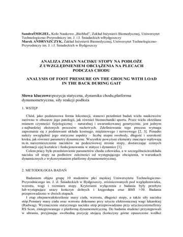 analiza zmian nacisku stopy na podłoże z uwzględnieniem