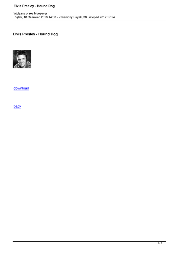Elvis Presley - Hound Dog Wpisany przez bluesever Piątek, 18 Czerwiec 2010 14:30 - Zmieniony Piątek, 30 Listopad 2012 17:24 Elvis Presley - Hound Dog download back 1/1