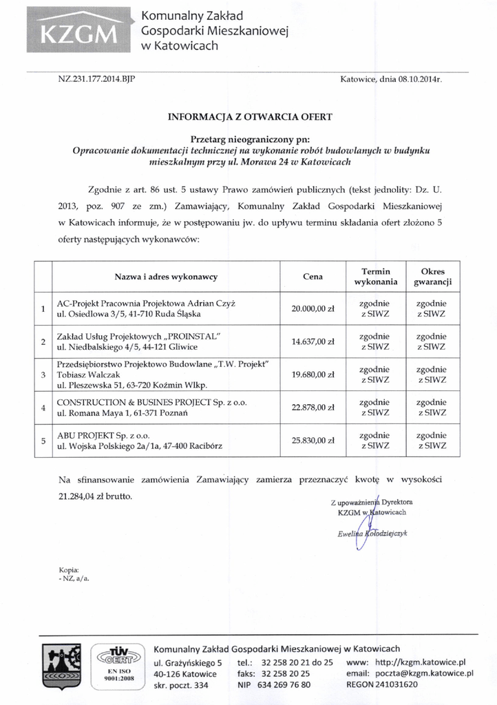Zamawiaj4cy, Komunalny Zaklad Gospodarki Meszkaniowej