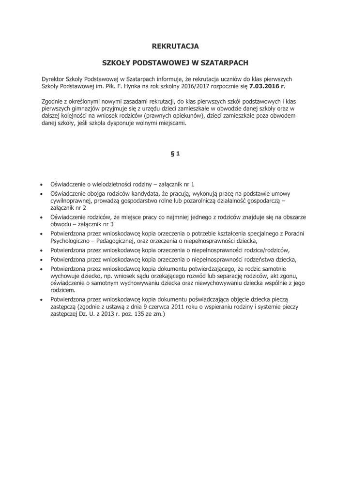 rekrutacja szkoły podstawowej w szatarpach